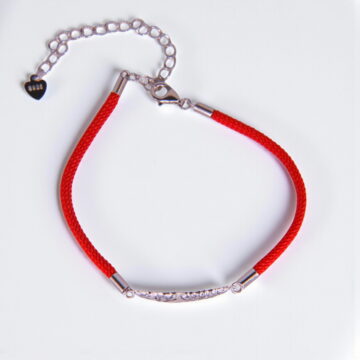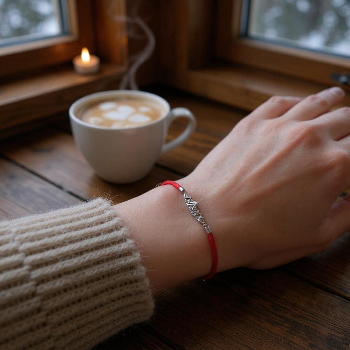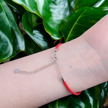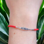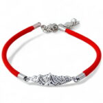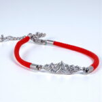 Bransoletka “Duch Gór” – Regulowana, Czerwony Sznur i Srebro 925 Platerowane Platyną