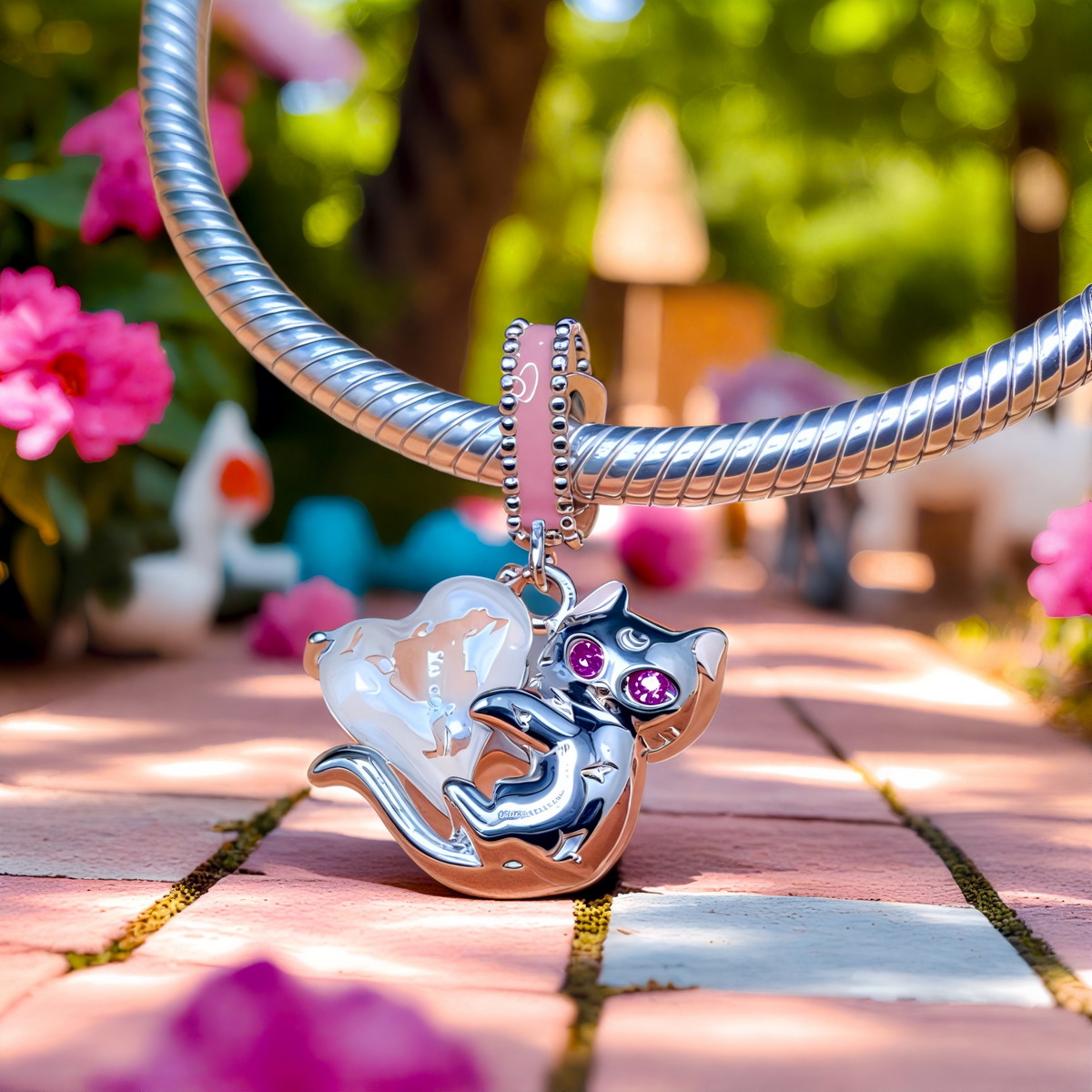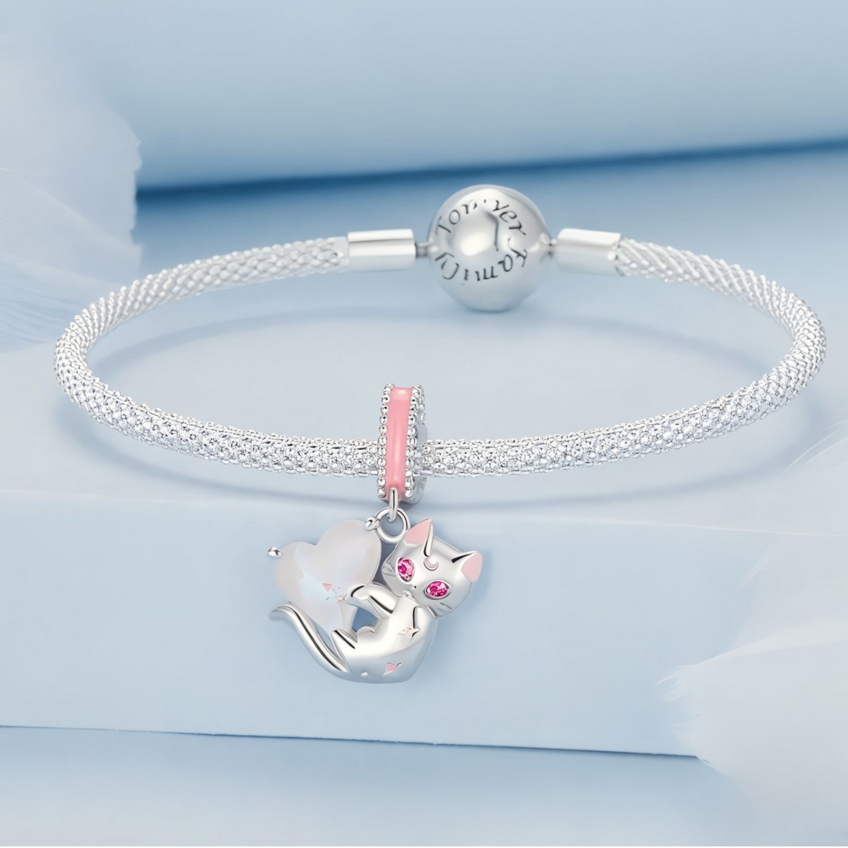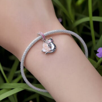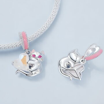Charms “Magiczny Kotek” ze Srebra 925 – Urocza Elegancja z Kryształowym Sercem