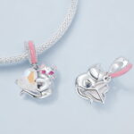 Charms Magiczny Kotek wiszący na sercu srebro 925