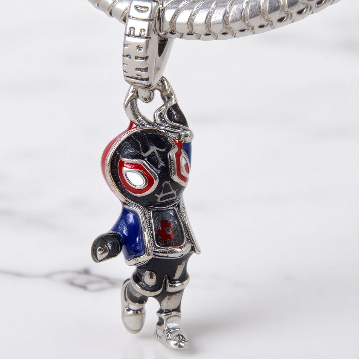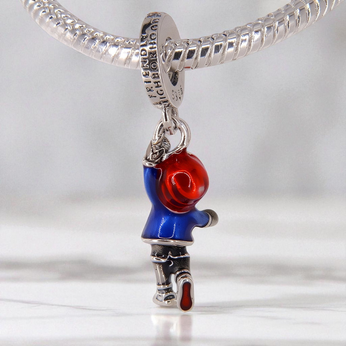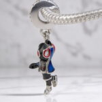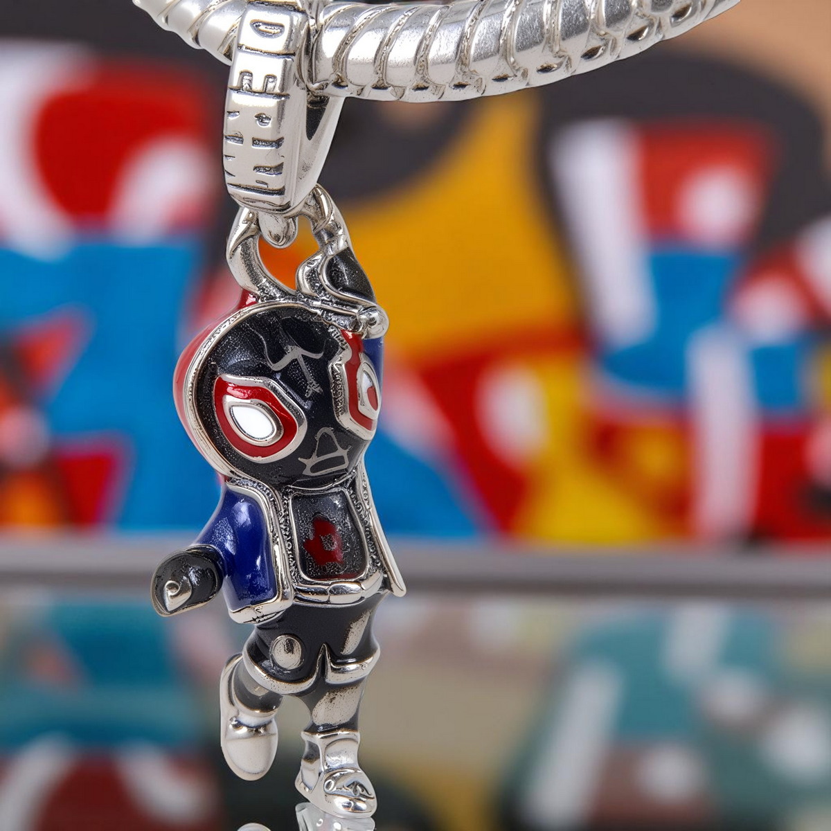 Charms “Miles Morales – Spider-Man” to obowiązkowa pozycja dla każdego fana uniwersum Marvela. Wykonany z najwyższej jakości srebra próby 925, ten charms przedstawia dynamiczną postać Milesa Moralesa w jego ikonicznym stroju. Jego precyzyjne detale i kolorowa emalia w odcieniach czerni, czerwieni i błękitu wiernie oddają wygląd bohatera.