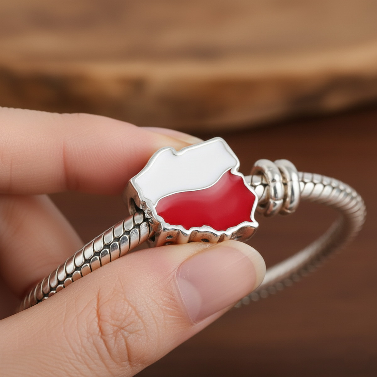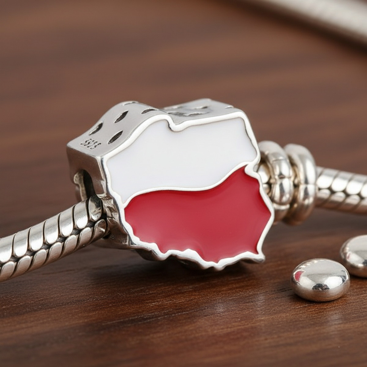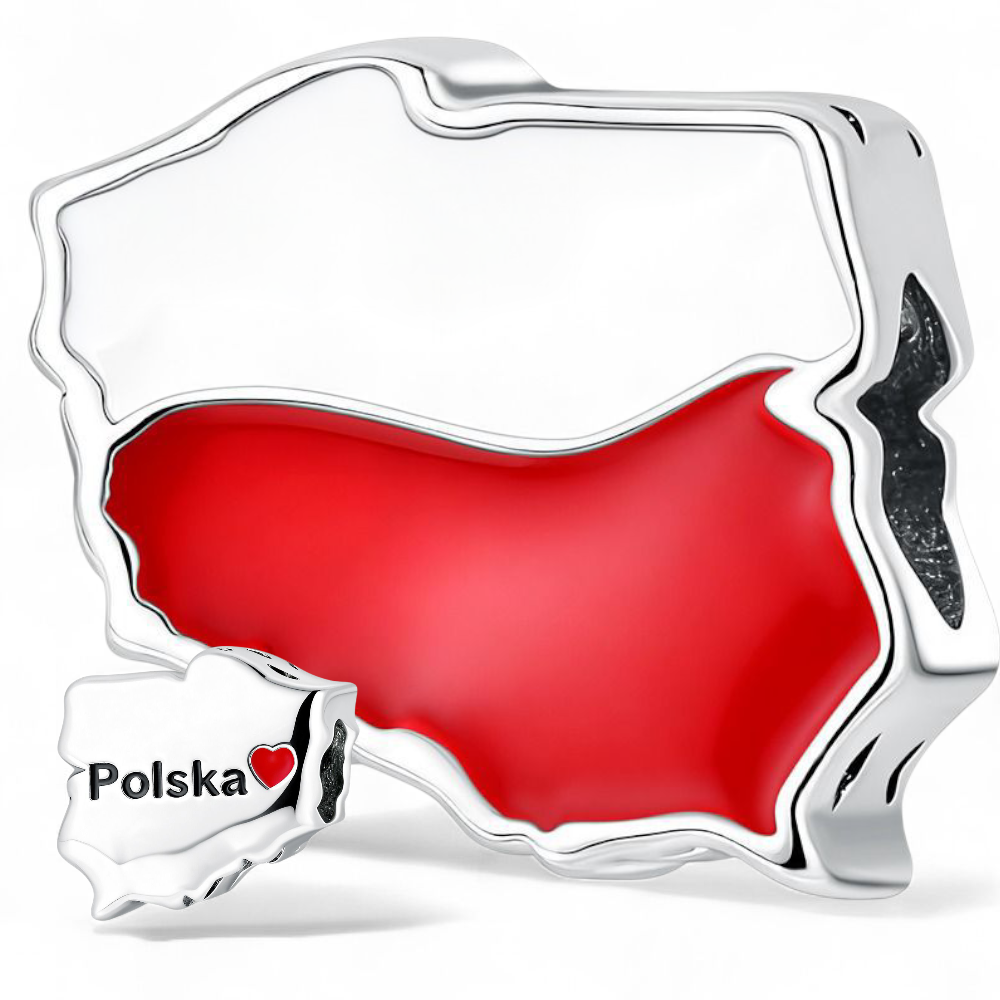 🇵🇱 Wzór Mapy Polski – na jednej stronie charmsa znajduje się precyzyjnie wykonana mapa Polski, symbolizująca Twoje pochodzenie.