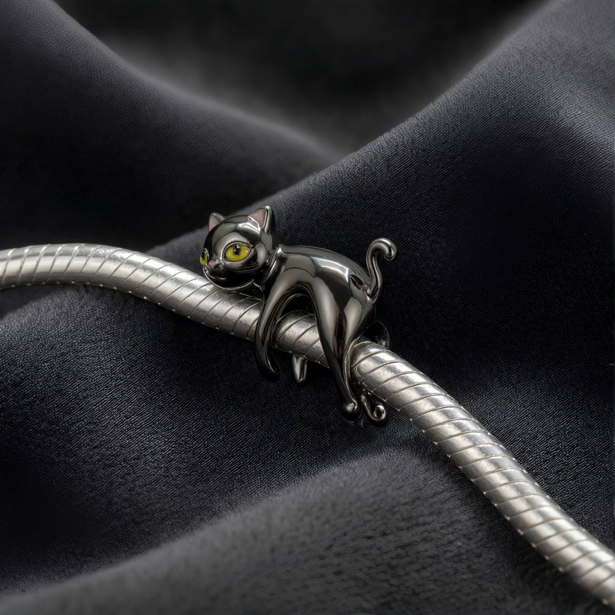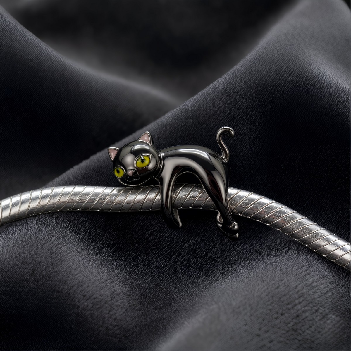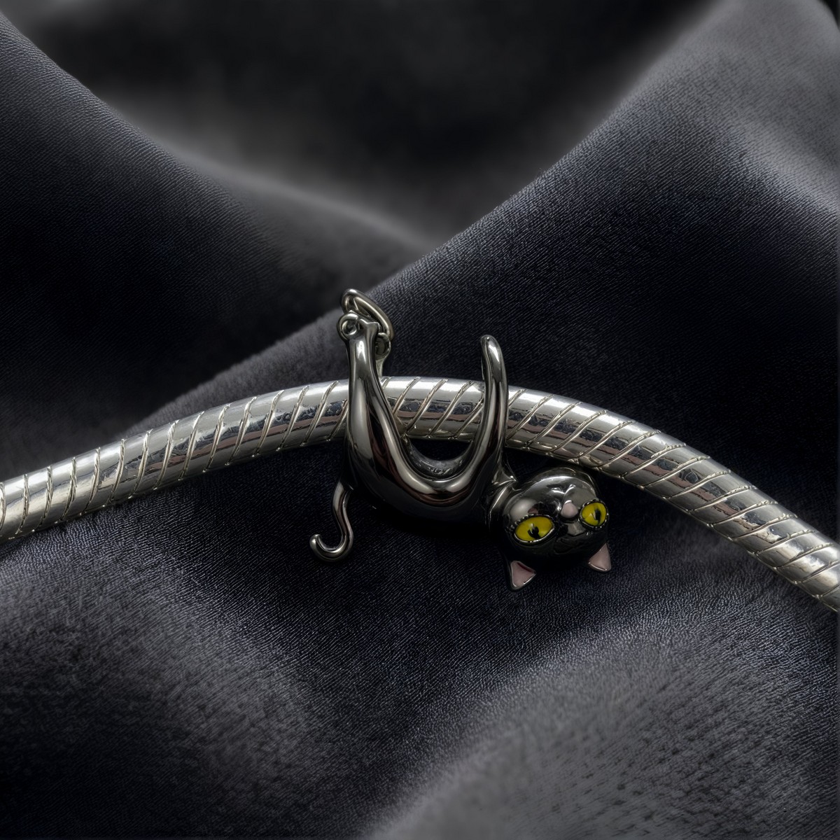 Charms “Psotny Czarny Kot” – Srebro i Czarne Złoto 🖤