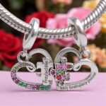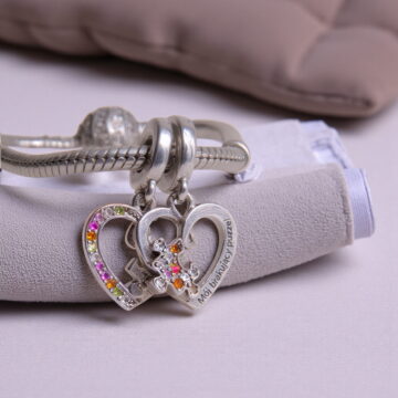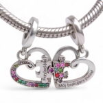 💖 Wielobarwne Cyrkonie – charms jest bogato zdobiony lśniącymi, wielobarwnymi cyrkoniami, które symbolizują barwność i radość wspólnych chwil.