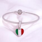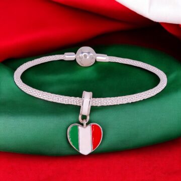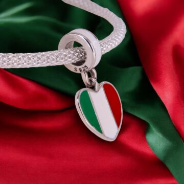 Ten drobny charms skrywa w sobie wielką miłość do włoskiej kultury, kuchni i podróży. Wzór serca wypełniony emalią w kolorach flagi Włoch – zielonym, białym i czerwonym – przywołuje wspomnienia słonecznych dni i dolce vita.
