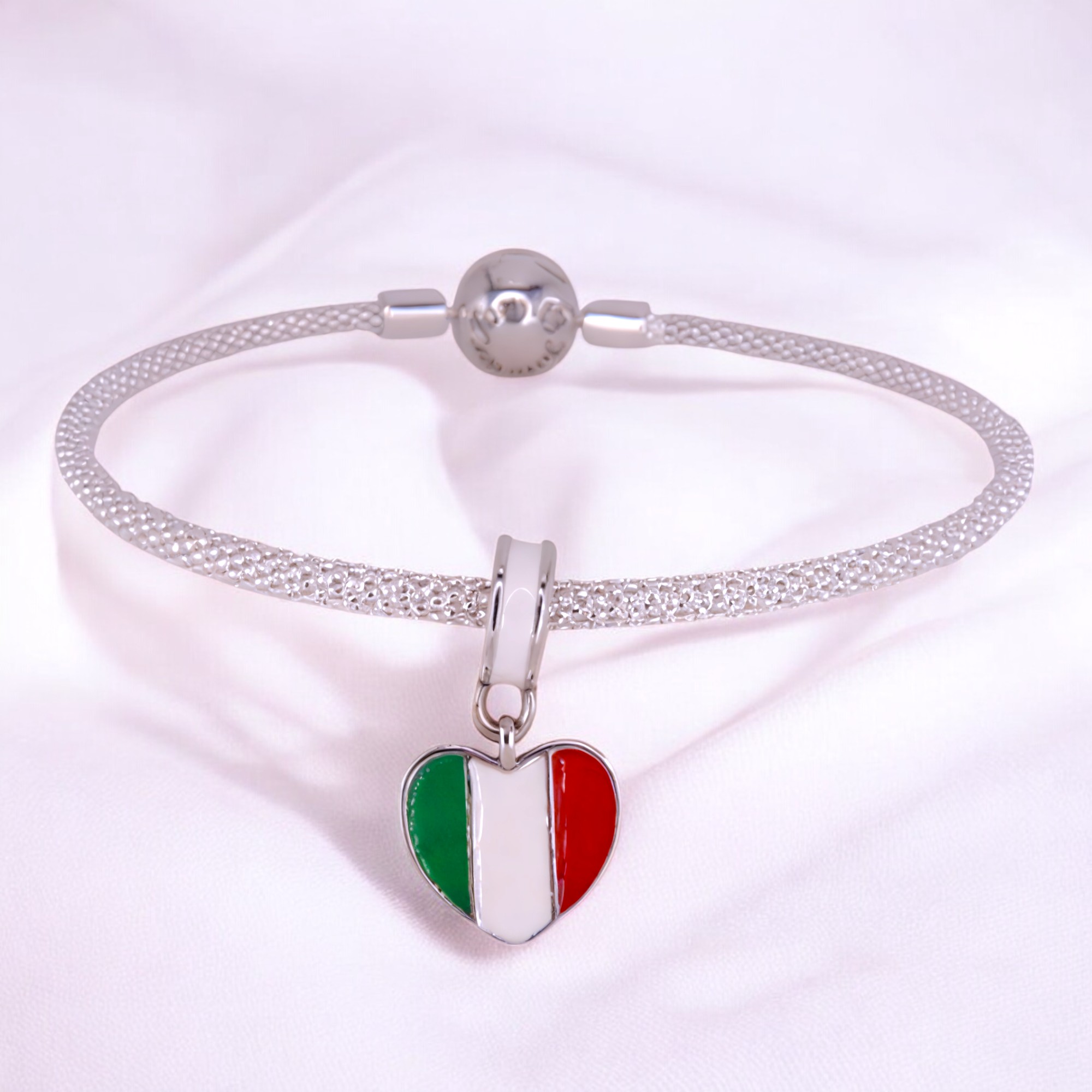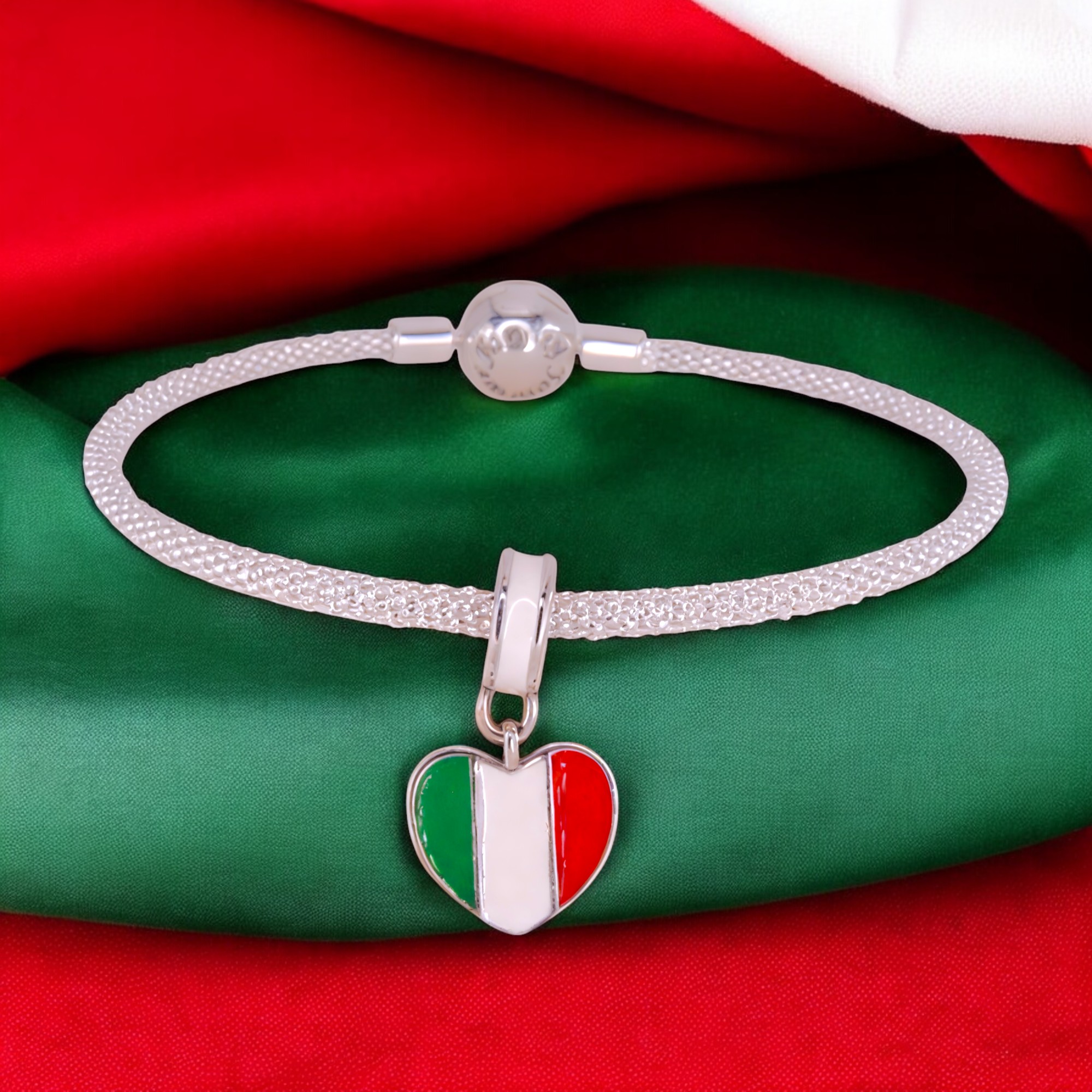 Charms Serce Włochy Srebro 925 Flaga Italia zawieszka