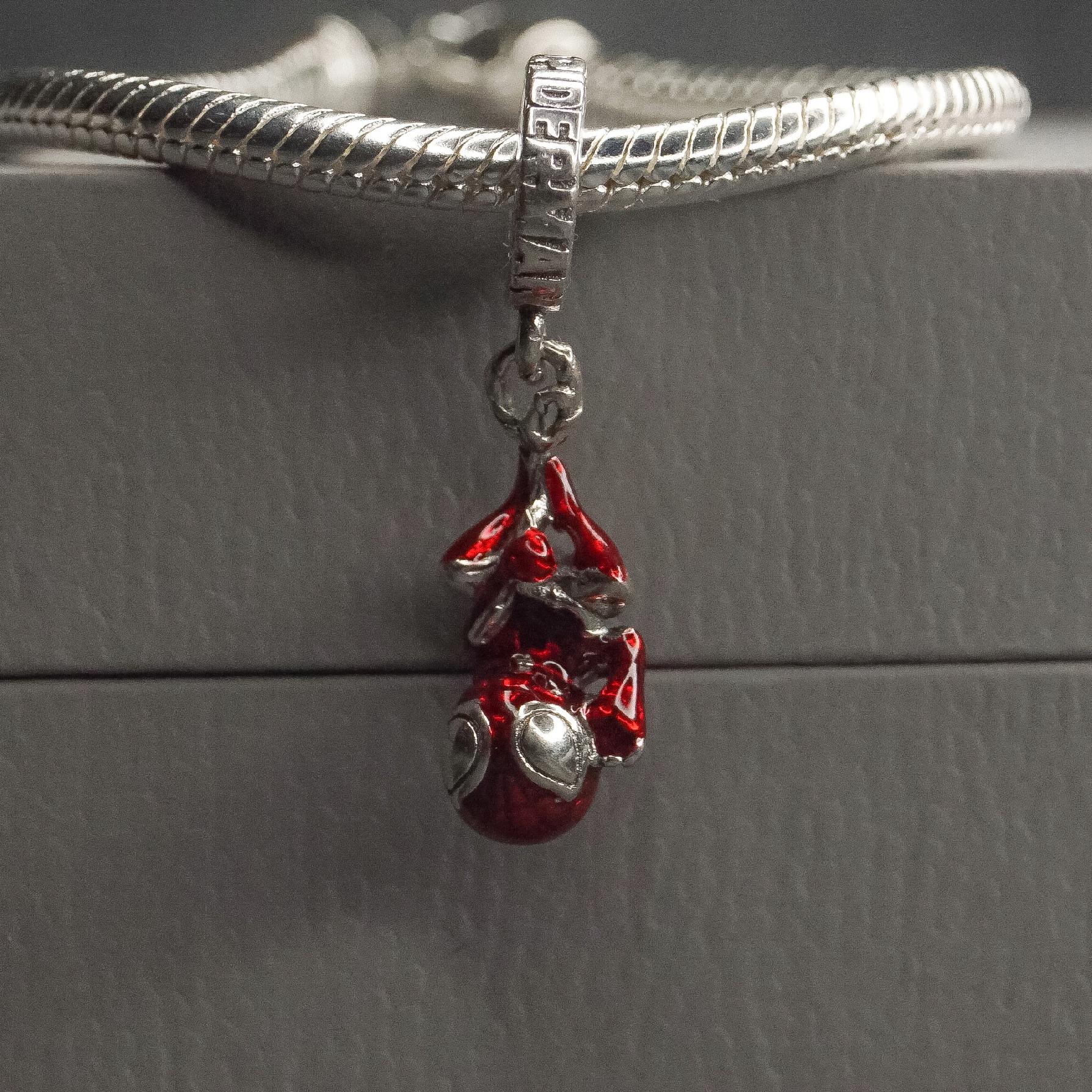 Charms “Spider-Man Marvel” to dynamiczna i pełna energii ozdoba, która pozwoli Ci wyrazić swoją pasję do świata superbohaterów. Wykonany ze srebra próby 925, ten wyjątkowy charms przedstawia kultowego Spider-Mana w jego charakterystycznej, wiszącej pozie, gotowego do akcji.
