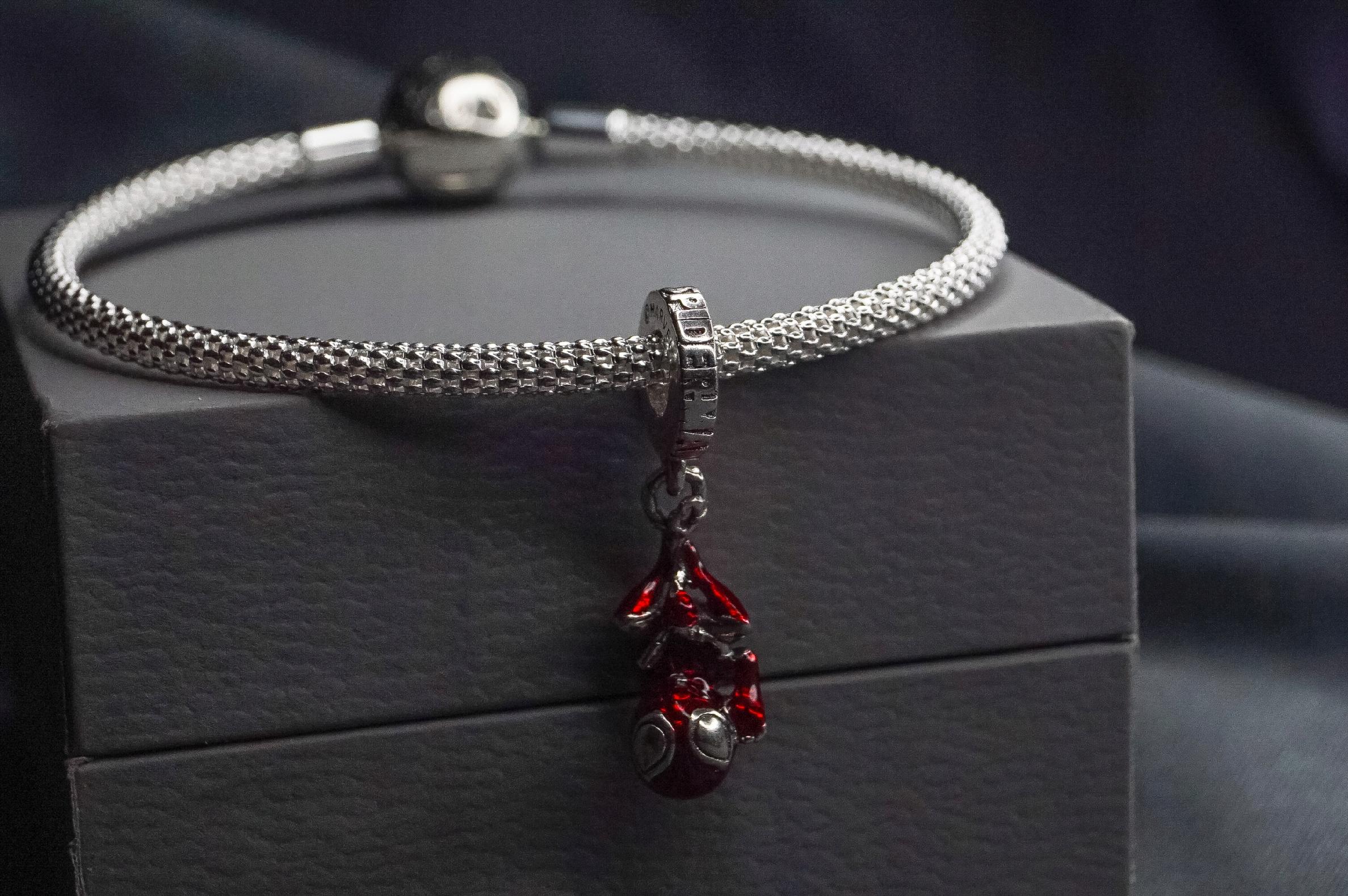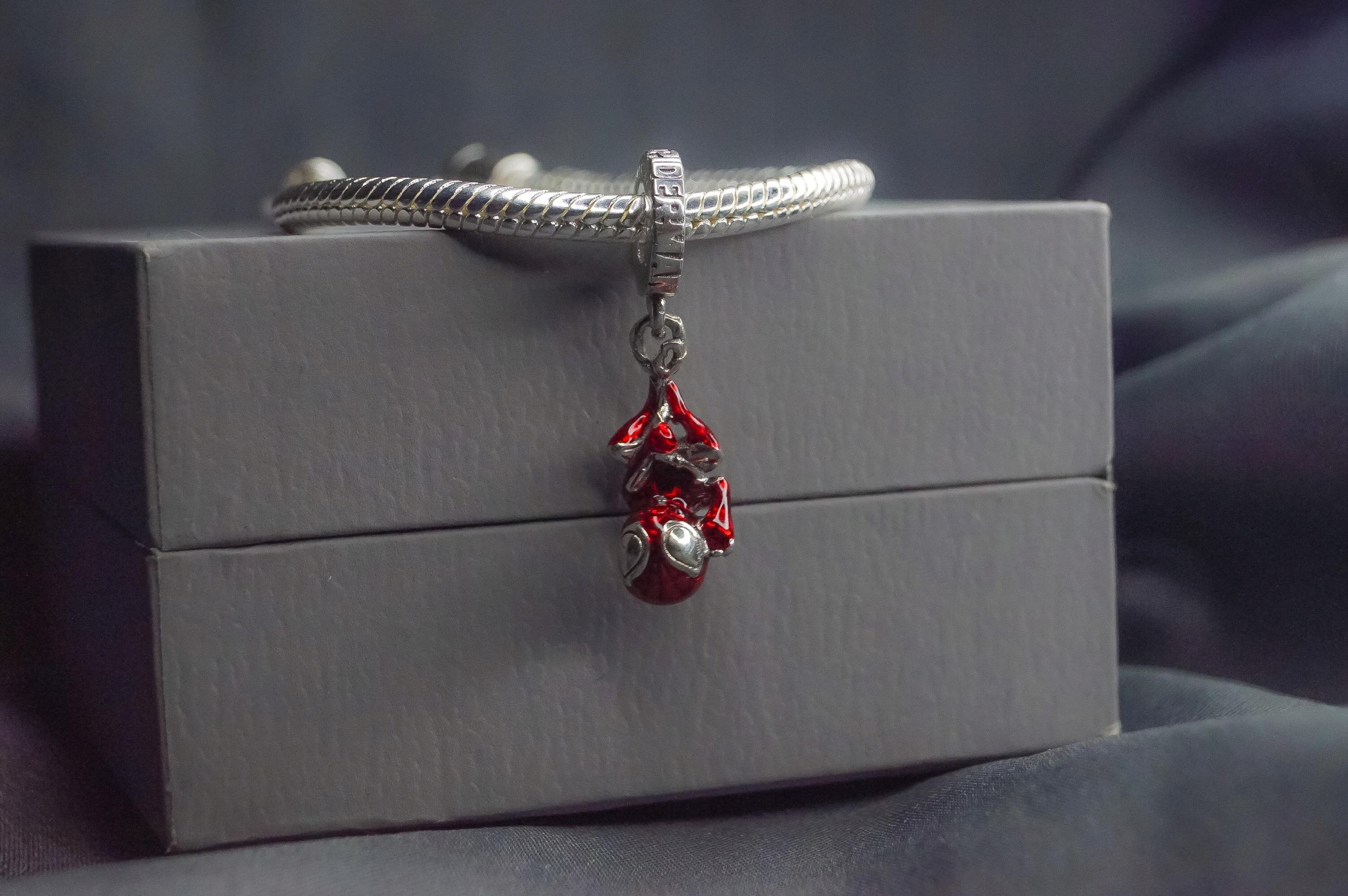 - Dynamiczny Design – wisząca poza Spider-Mana dodaje charmsowi ruchu i charakteru.
