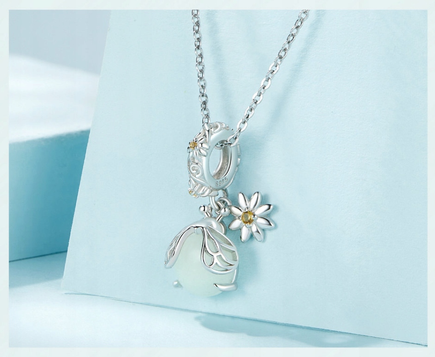 Charms “Magiczny Świetlik Nocy” to prawdziwy klejnot wśród biżuterii, który przeniesie Cię w świat letnich wieczorów pełnych magii. Wykonany z 100% srebra próby 925 i uszlachetniony lśniącym platynowym pokryciem, ten misternie zaprojektowany charms przedstawia uroczego robaczka świetlika, który skrywa w sobie niezwykłą niespodziankę.