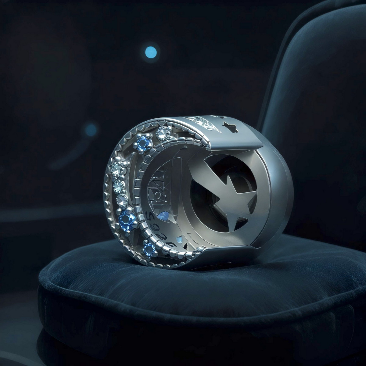 💎 Lśniące Cyrkonie – dodają blasku i podkreślają kosmiczny motyw