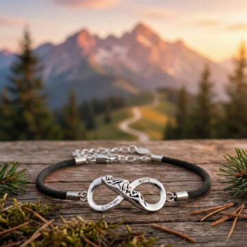 Talizman Pasjonata: Połączenie znaku nieskończoności z górskimi szczytami to idealny symbol niekończącej się miłości do natury i wędrówek. Dodatkowo czarny sznurek często noszony jest jako talizman ochronny.