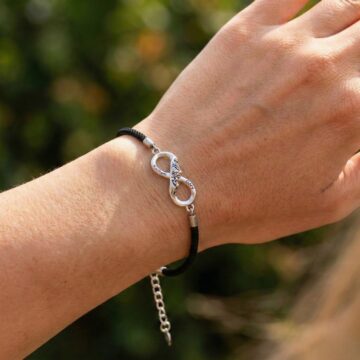 Mocny, czarny sznurek pięknie kontrastuje z blaskiem srebra S925. Wygodne zapięcie na karabińczyk z przedłużką umożliwia idealne dopasowanie bransoletki do nadgarstka, zapewniając komfort na co dzień.