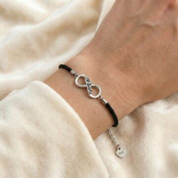 Mocny, czarny sznurek pięknie kontrastuje z blaskiem srebra S925. Wygodne zapięcie na karabińczyk z przedłużką umożliwia idealne dopasowanie bransoletki do nadgarstka, zapewniając komfort na co dzień.