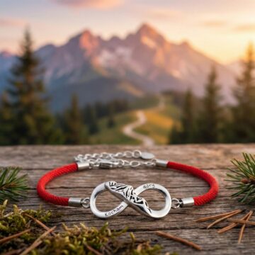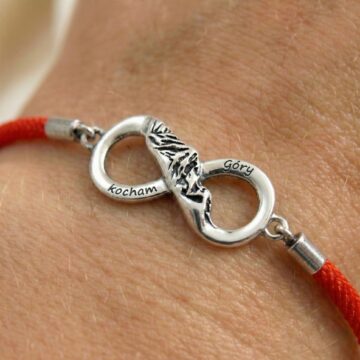 Talizman Pasjonata: Połączenie znaku nieskończoności z górskimi szczytami to idealny symbol niekończącej się miłości do natury i wędrówek. Dodatkowo czerwony sznurek często noszony jest jako talizman ochronny.