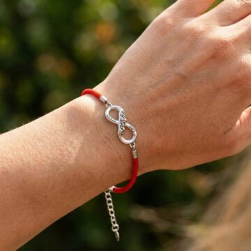 Mocny, czerwony sznurek pięknie kontrastuje z blaskiem srebra S925. Wygodne zapięcie na karabińczyk z przedłużką umożliwia idealne dopasowanie bransoletki do nadgarstka, zapewniając komfort na co dzień.