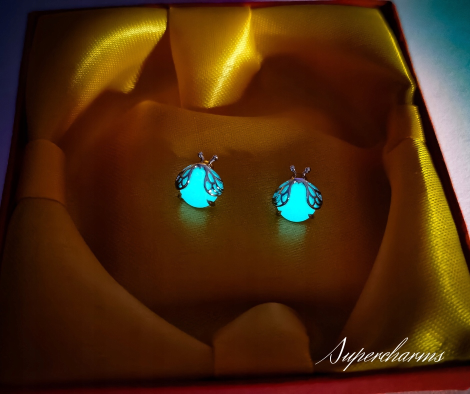 🐞 Srebro 925 pokryte platyną – zapewnia szlachetny blask, odporność na matowienie i długotrwałą trwałość. ✨ Świecący Minerał – centralny kamień, który ładuje się światłem w dzień (zarówno naturalnym, jak i sztucznym) i świeci jasnym, delikatnym blaskiem przez całą noc, tworząc magiczny efekt świetlika. 💧 Hipoalergiczne – bezpieczne dla wrażliwej skóry.
