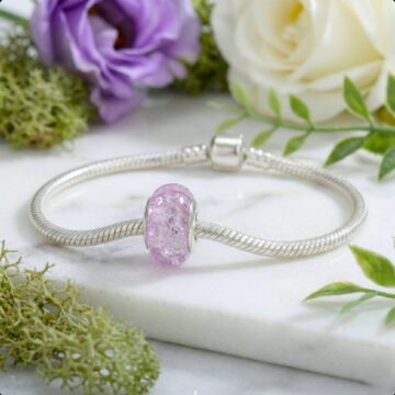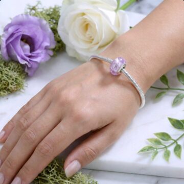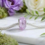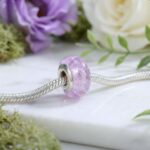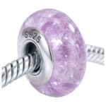 Ten charms to połączenie artystycznego rzemiosła i delikatnej kolorystyki. Wykonany z wysokiej jakości szkła, koralik wyróżnia się lekko pofalowaną powierzchnią. Ta subtelna, nieregularna faktura sprawia, że światło tańczy na powierzchni szkła, wydobywając z lawendowej barwy dodatkową głębię i trójwymiarowość.