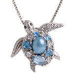 Naszyjnik “Morski Żółw” – Srebro 925 Platerowane Platyną, Cyrkonie i Spinel