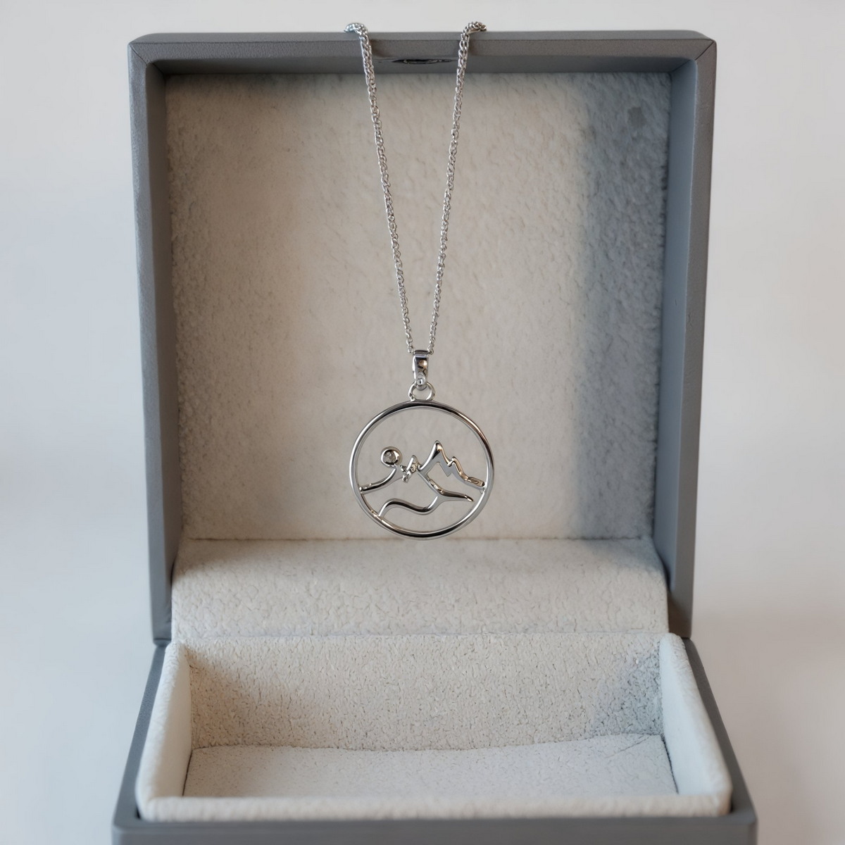 Naszyjnik “Górska Panorma” to idealny dodatek dla każdego, kto kocha wędrówki, górskie szlaki i majestat natury. Ten elegancki naszyjnik, wykonany ze srebra próby 925, przedstawia ażurowy motyw górskiego krajobrazu zamkniętego w okręgu.