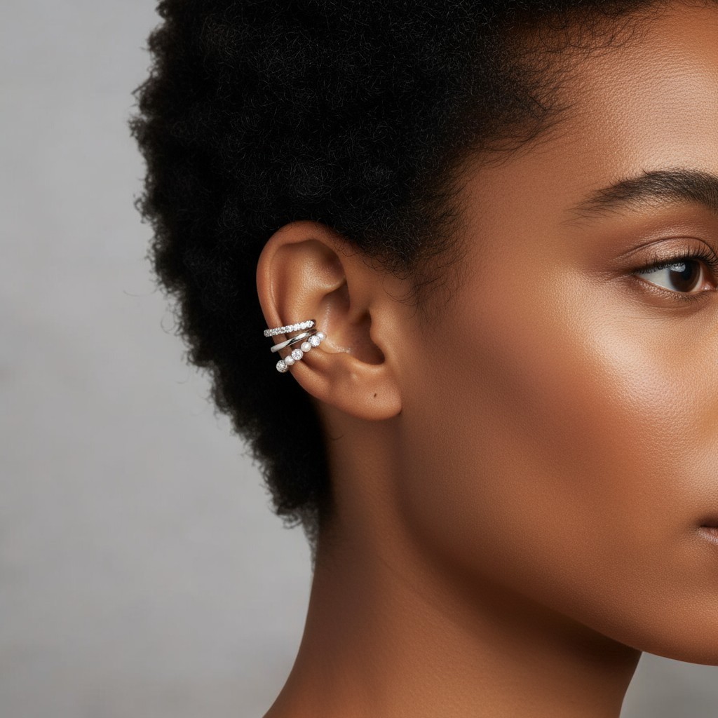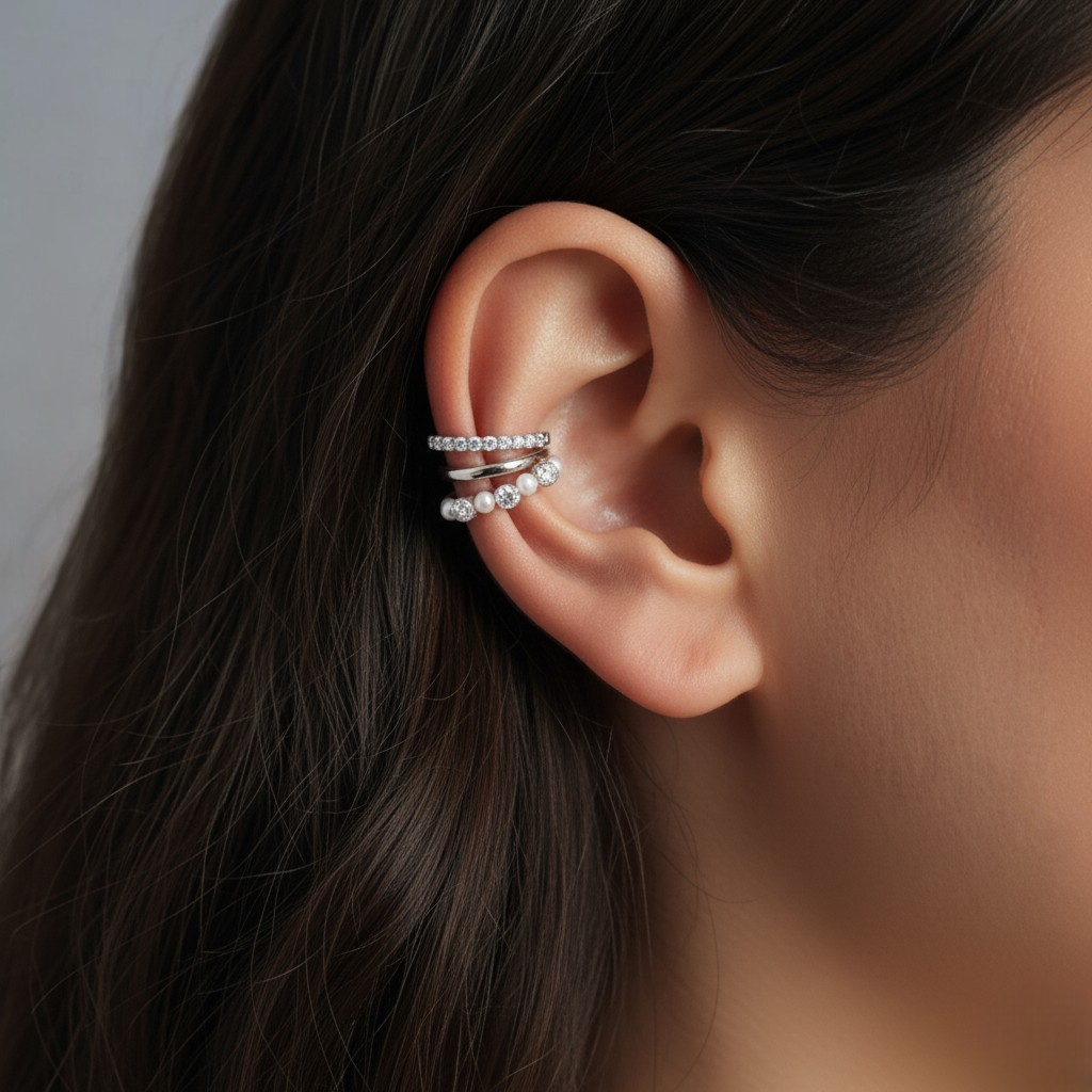 ✅ Styl: Wielowarstwowa nausznica typu Cuff (nie wymaga przebicia ucha).