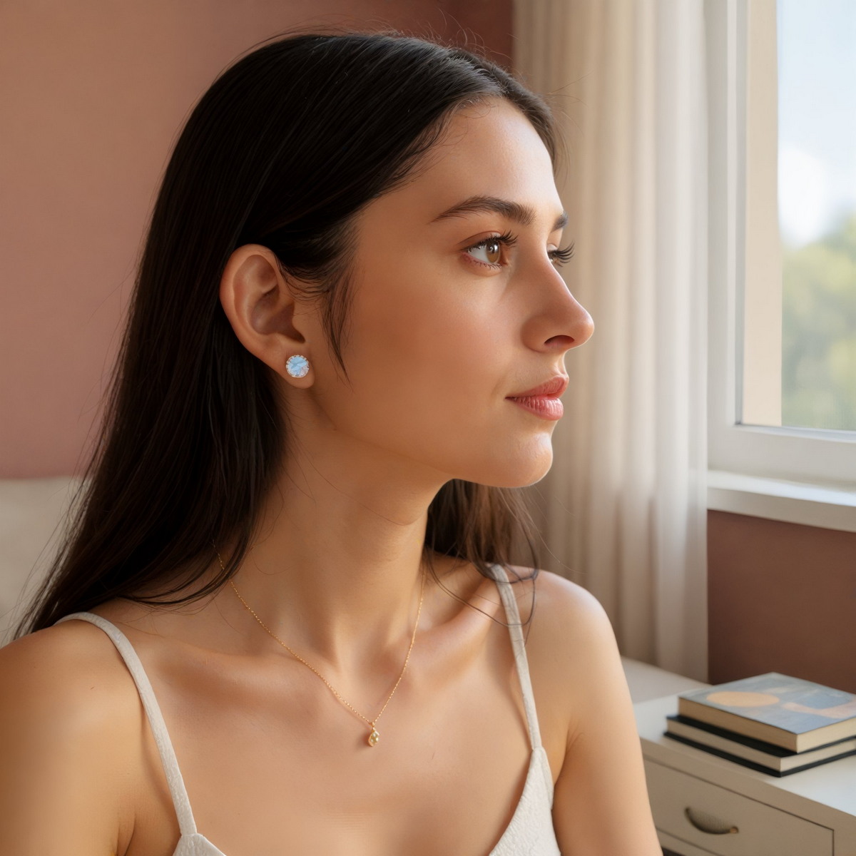 Kolczyki sztyfty “Oceaniczne Halo” to kwintesencja elegancji, która rozświetli Twoją twarz magicznym blaskiem. Wykonane ze srebra próby 925, kolczyki prezentują w centrum olśniewający niebieski opal, który hipnotyzuje swoją iryzującą grą barw.