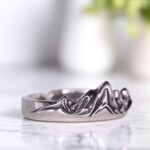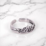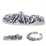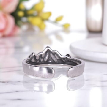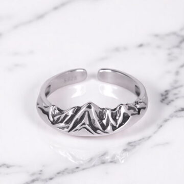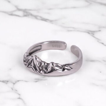 Pierścionek “Masyw Górski” to wyjątkowa biżuteria wykonana ze srebra 929. Jego główną ozdobą jest reliefowy wzór przedstawiający majestatyczne pasmo górskie, które zachwyca detalami i głębią. Otwarta konstrukcja pierścionka umożliwia swobodną regulację rozmiaru, idealnie dopasowując się do Twojej dłoni.