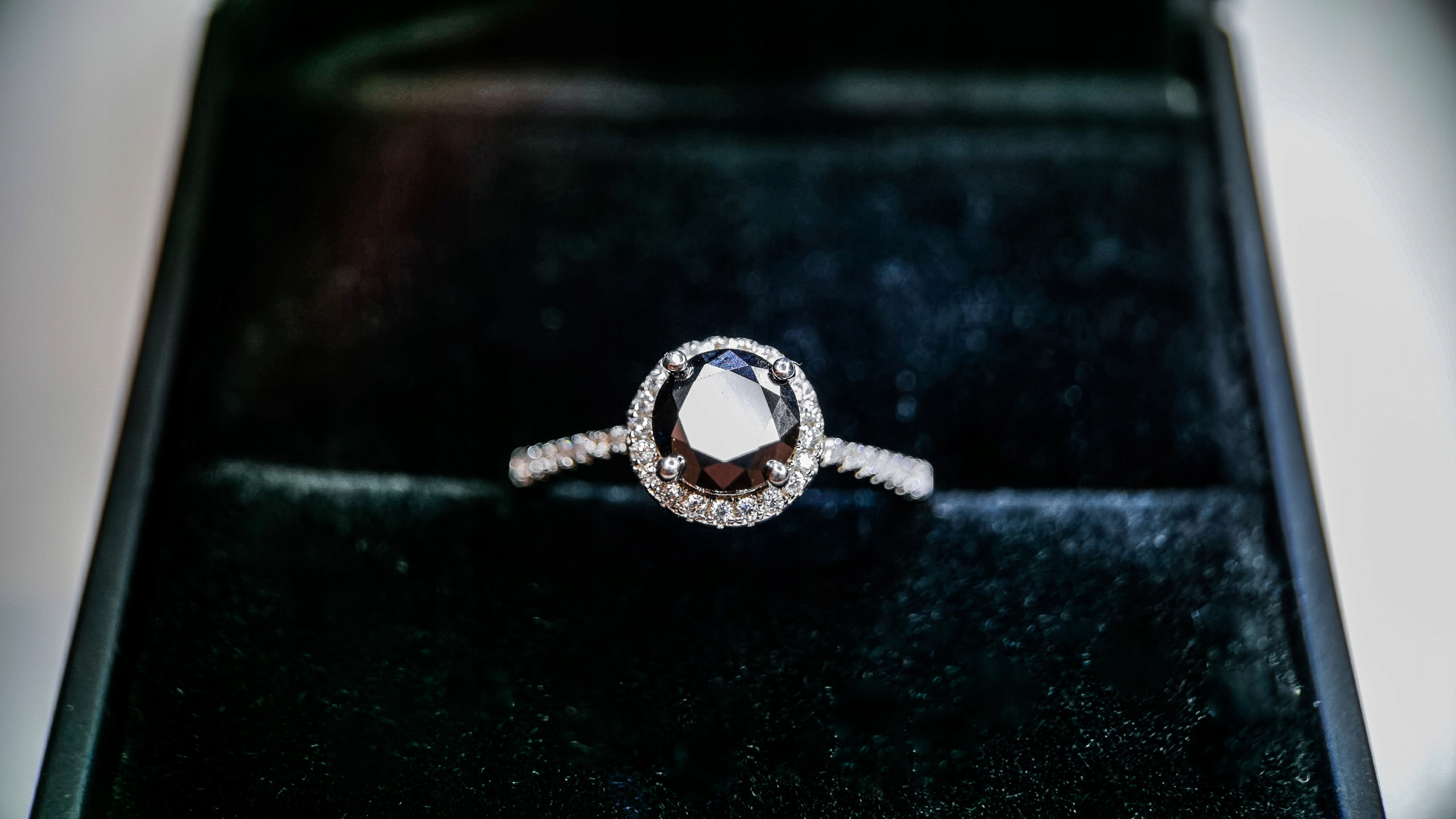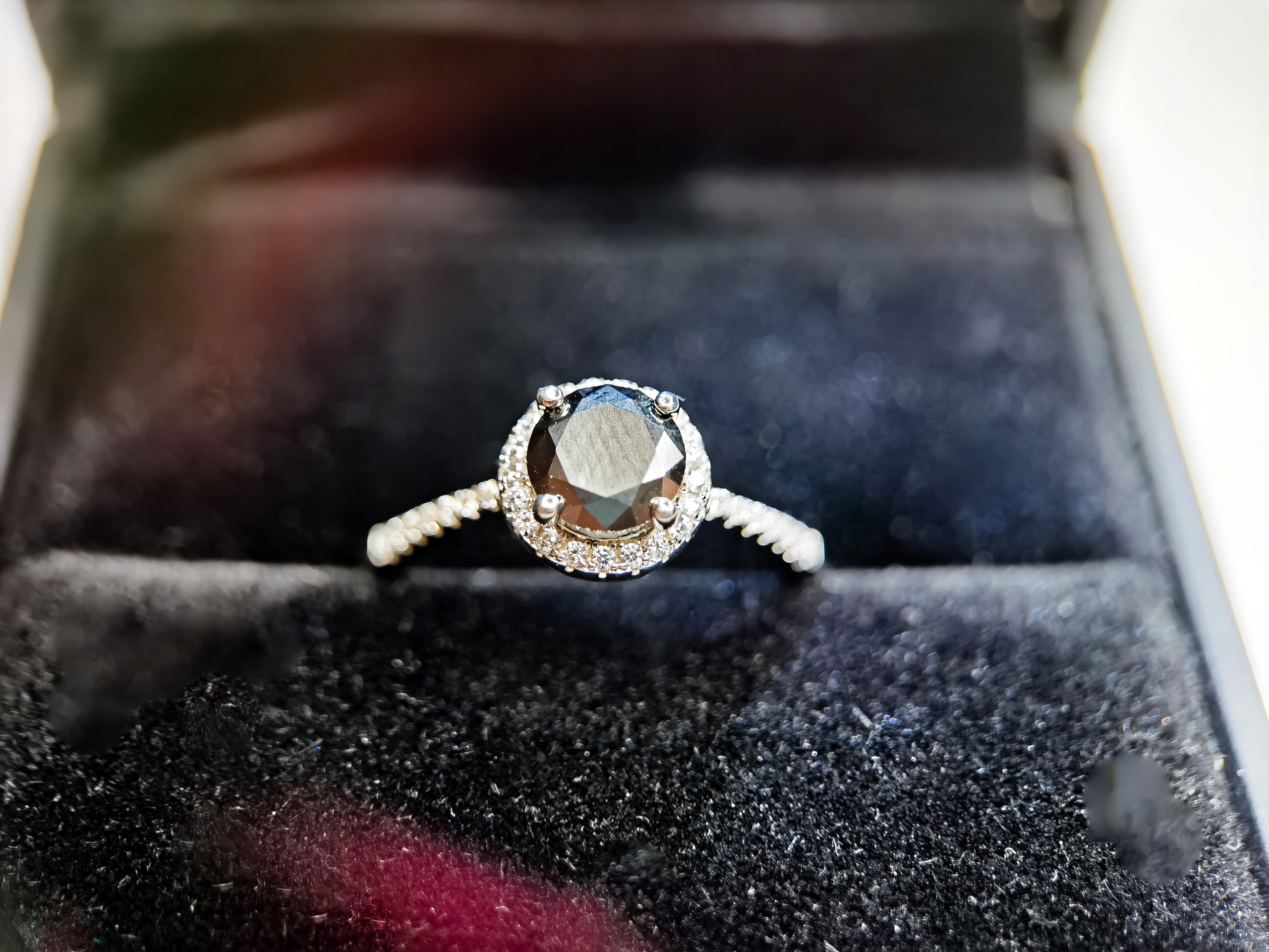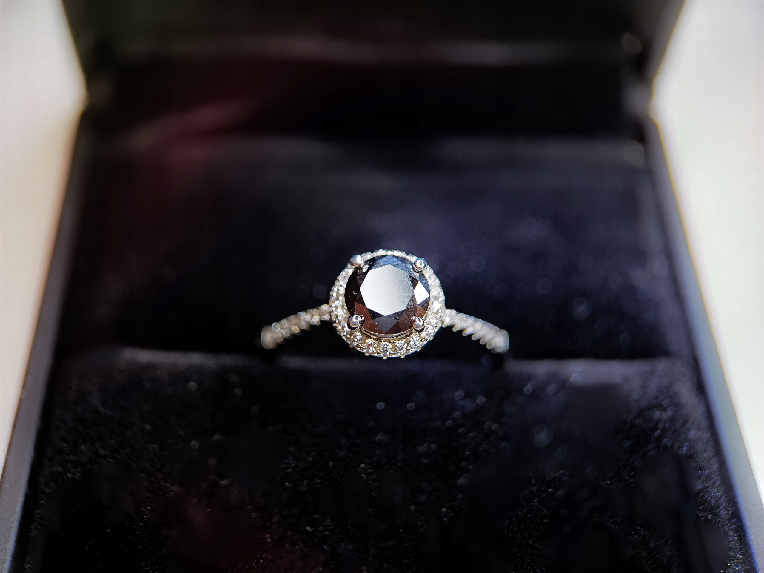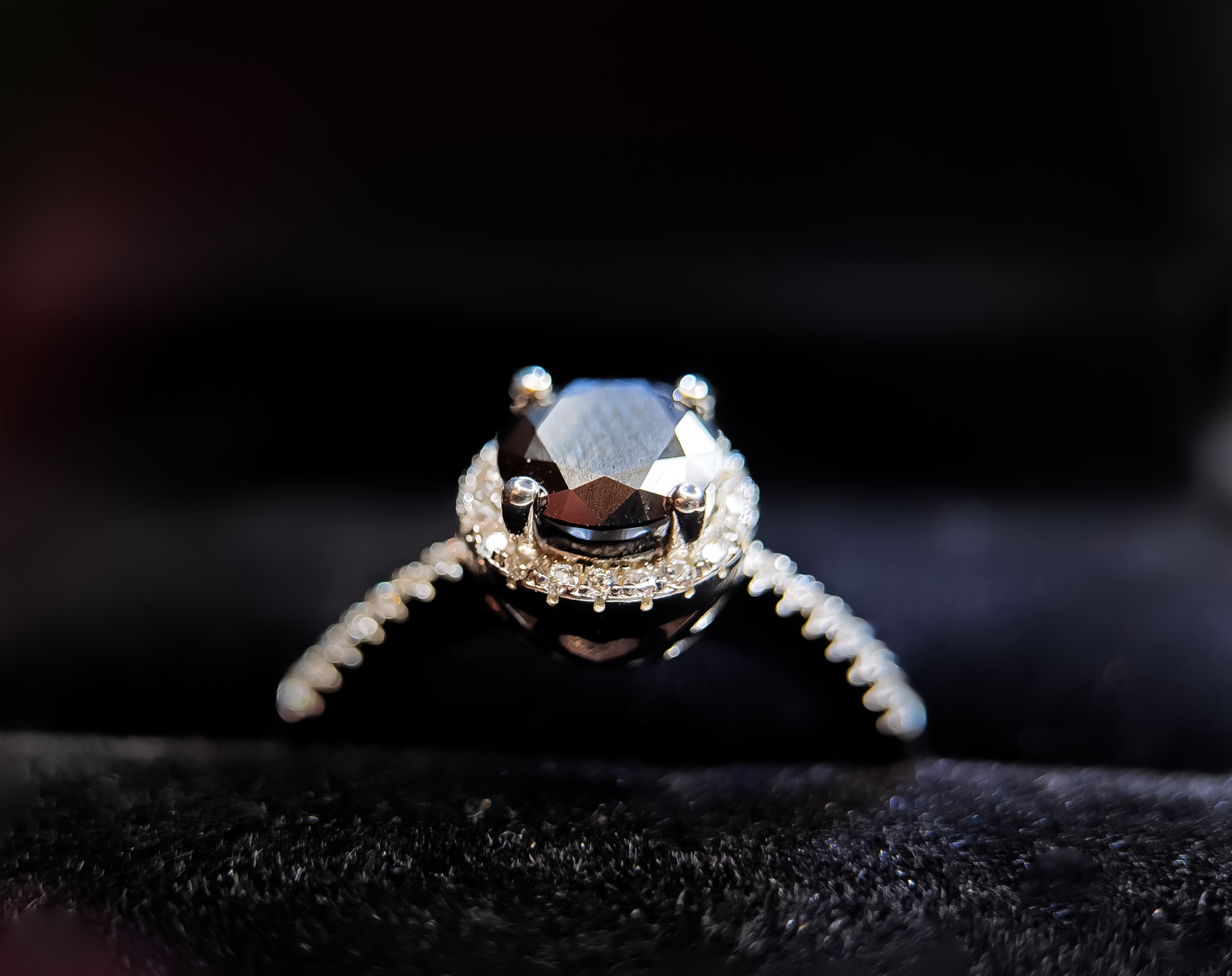 🖤 Moissanite Głęboka Czerń – centralny kamień o hipnotyzującym, czarnym kolorze, który symbolizuje tajemniczość, elegancję i siłę.