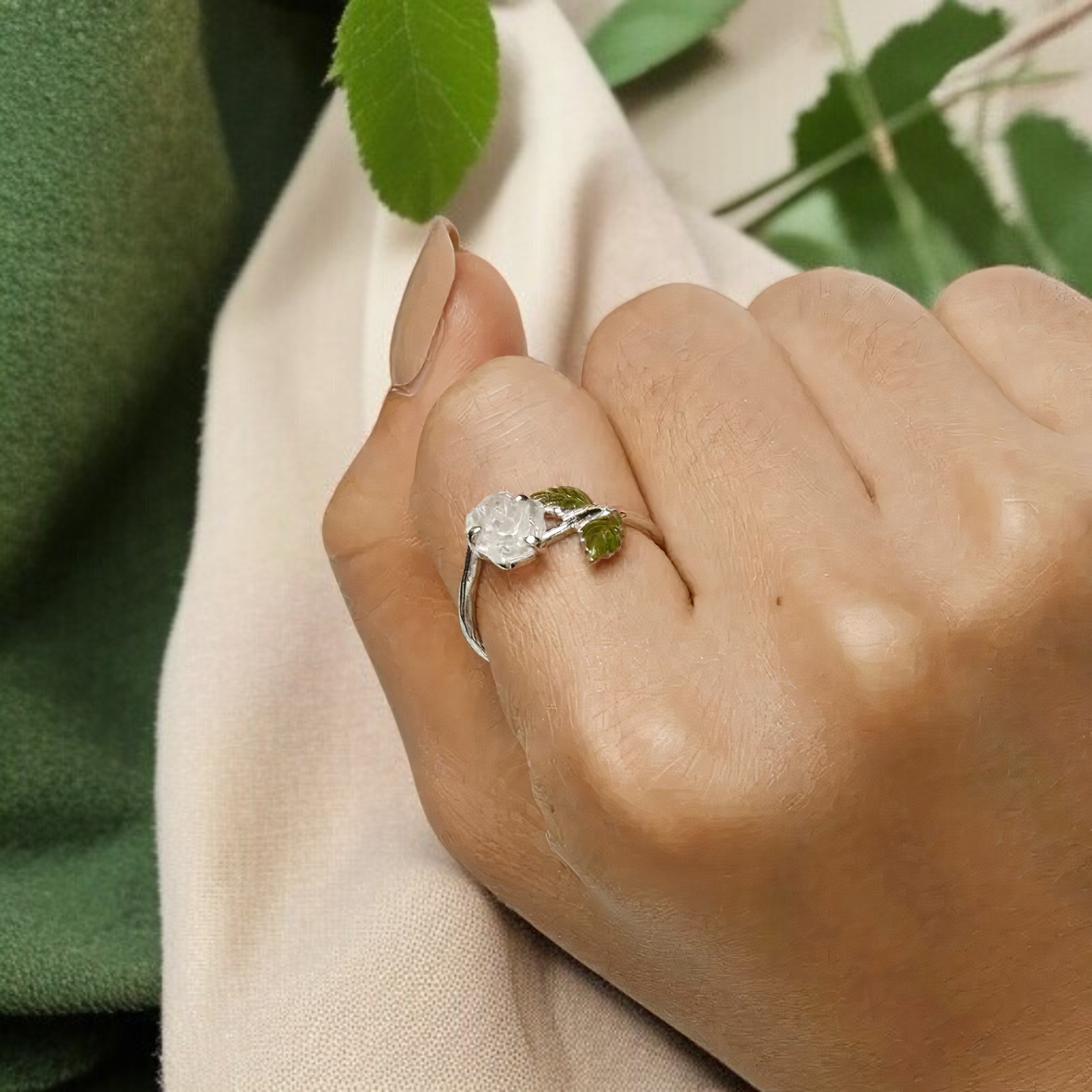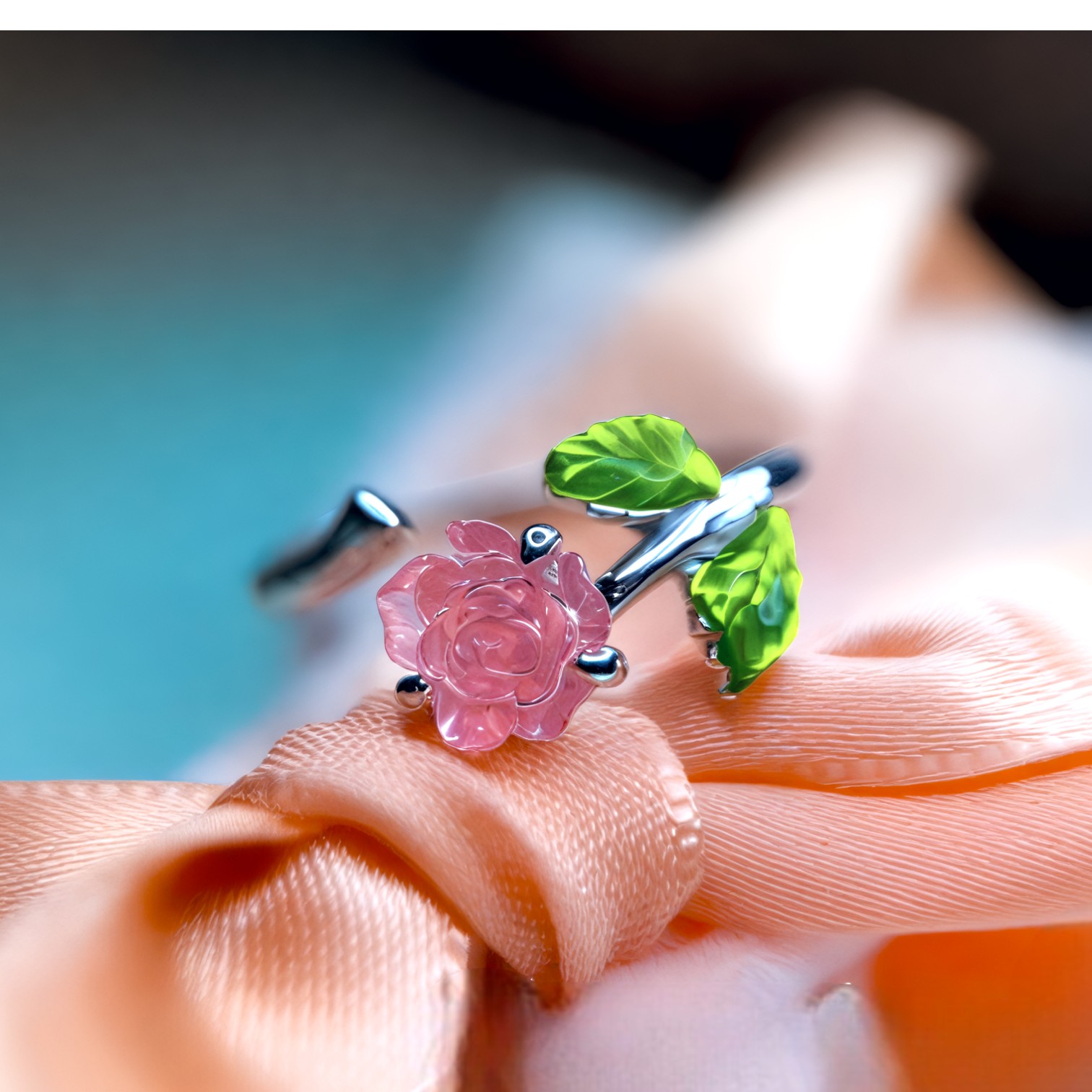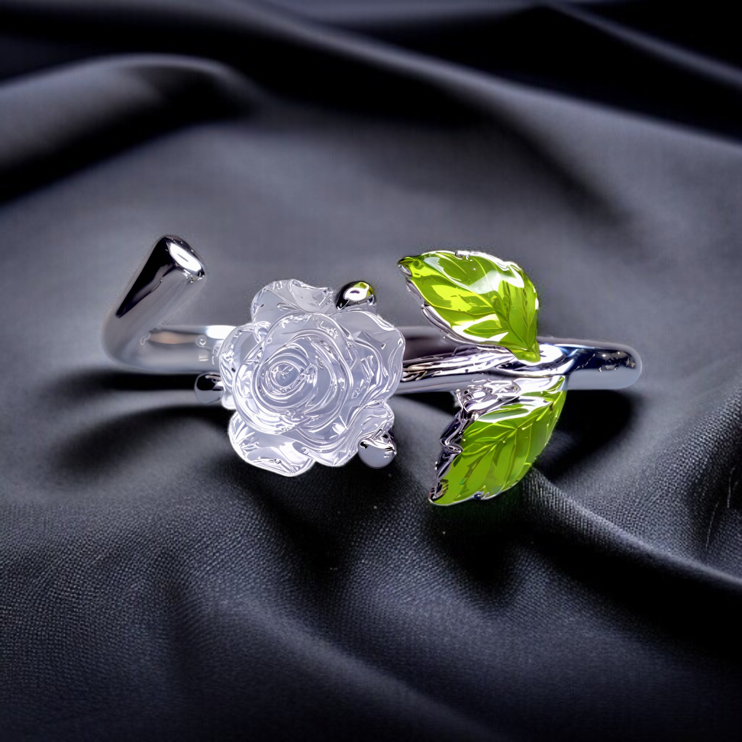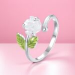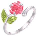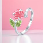 Pierścionek “Magiczna Róża” to niezwykła biżuteria, która wchodzi w interakcję ze światłem, zmieniając swój wygląd w ciągu dnia. Wykonany ze srebra próby 925 i pokryty lśniącym platynowym pokryciem, pierścionek prezentuje subtelny motyw róży z zielonymi listkami, idealny dla miłośniczek delikatnej biżuterii.