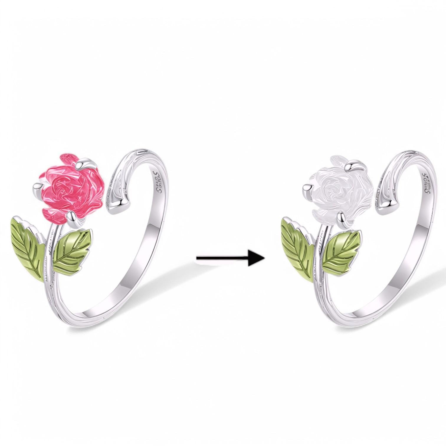 Pierścionek “Magiczna Róża” – Srebro 925, Platyna, Zmiennobarwny