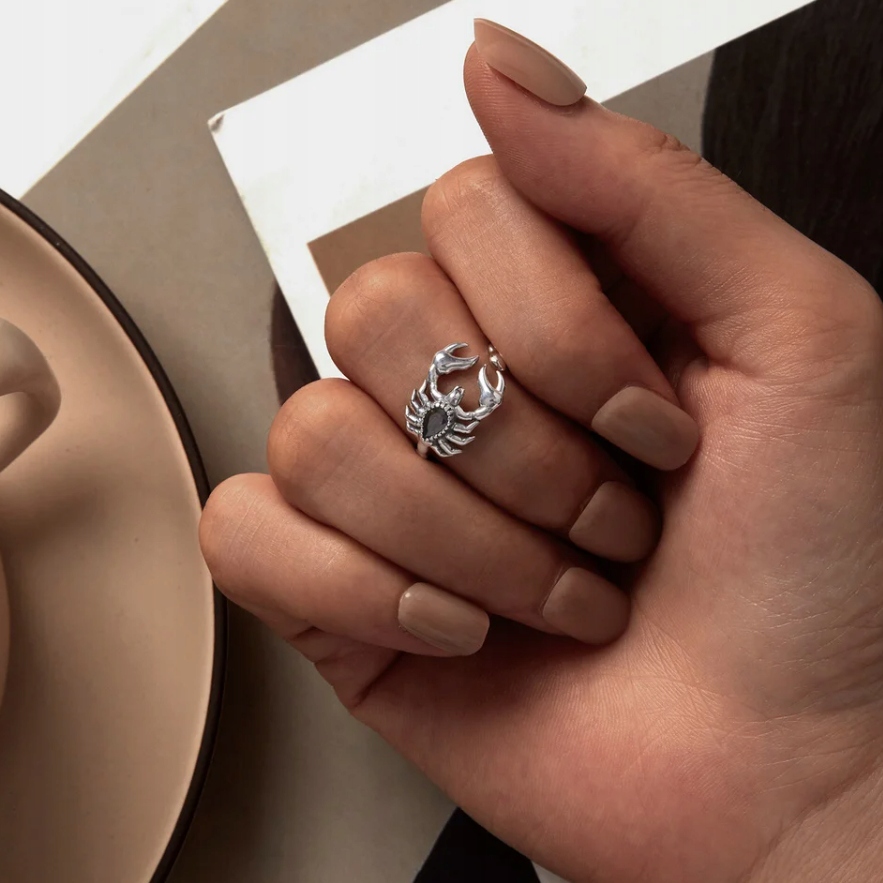 🔄 Regulowana Konstrukcja – Pierścionek posiada otwartą obrączkę, którą tworzy ogon skorpiona. Umożliwia to łatwą regulację rozmiaru, dzięki czemu idealnie dopasuje się do każdego palca i jest świetnym pomysłem na prezent.
