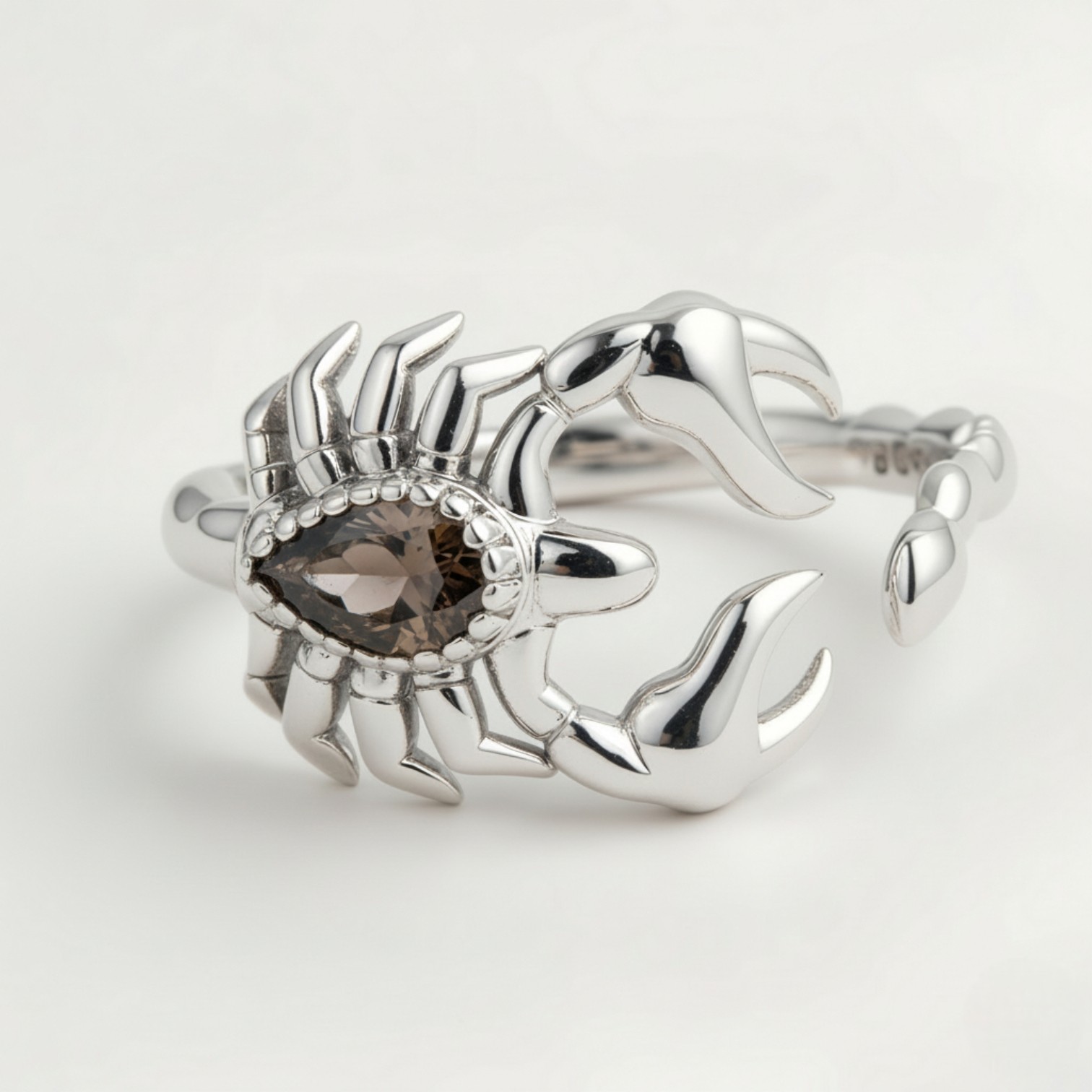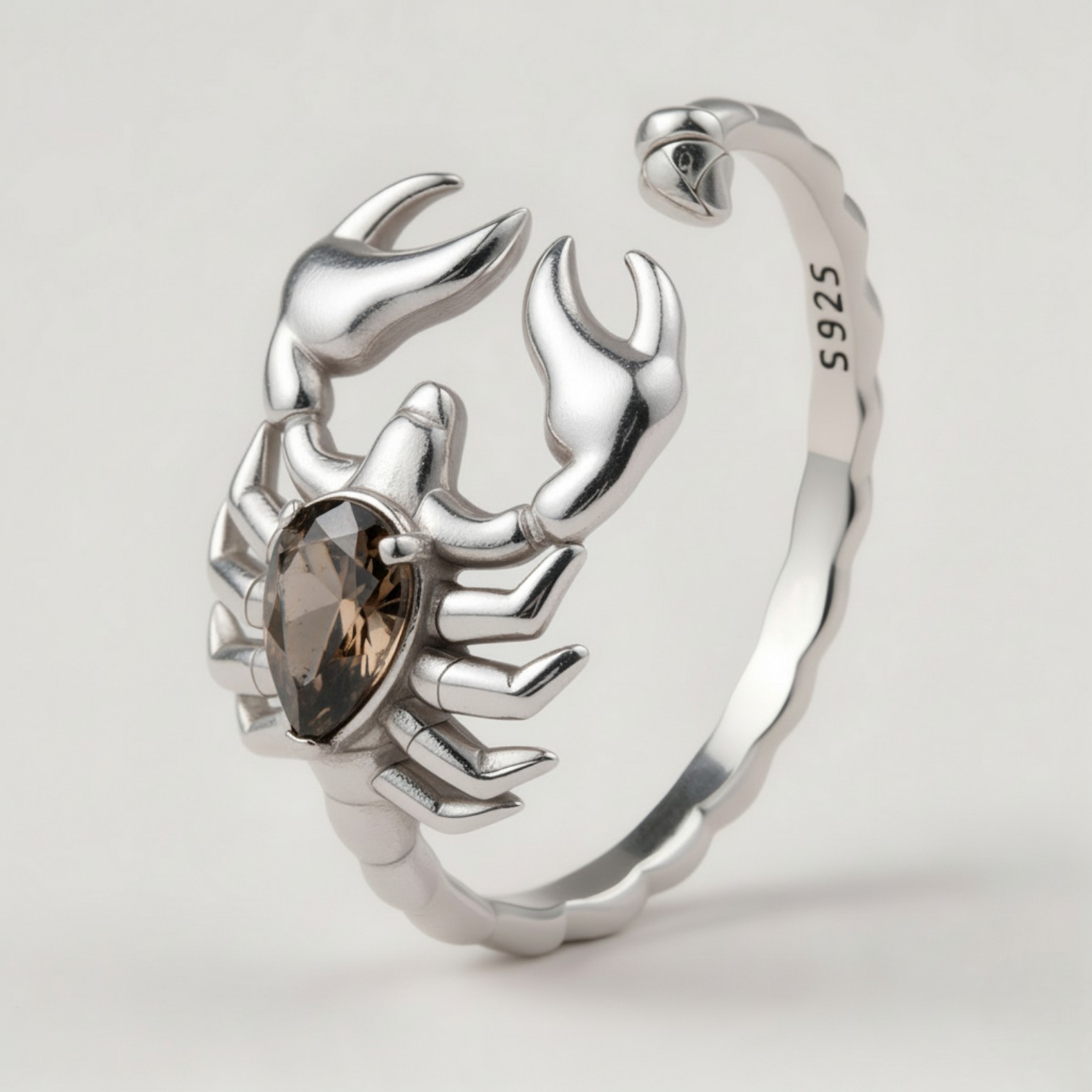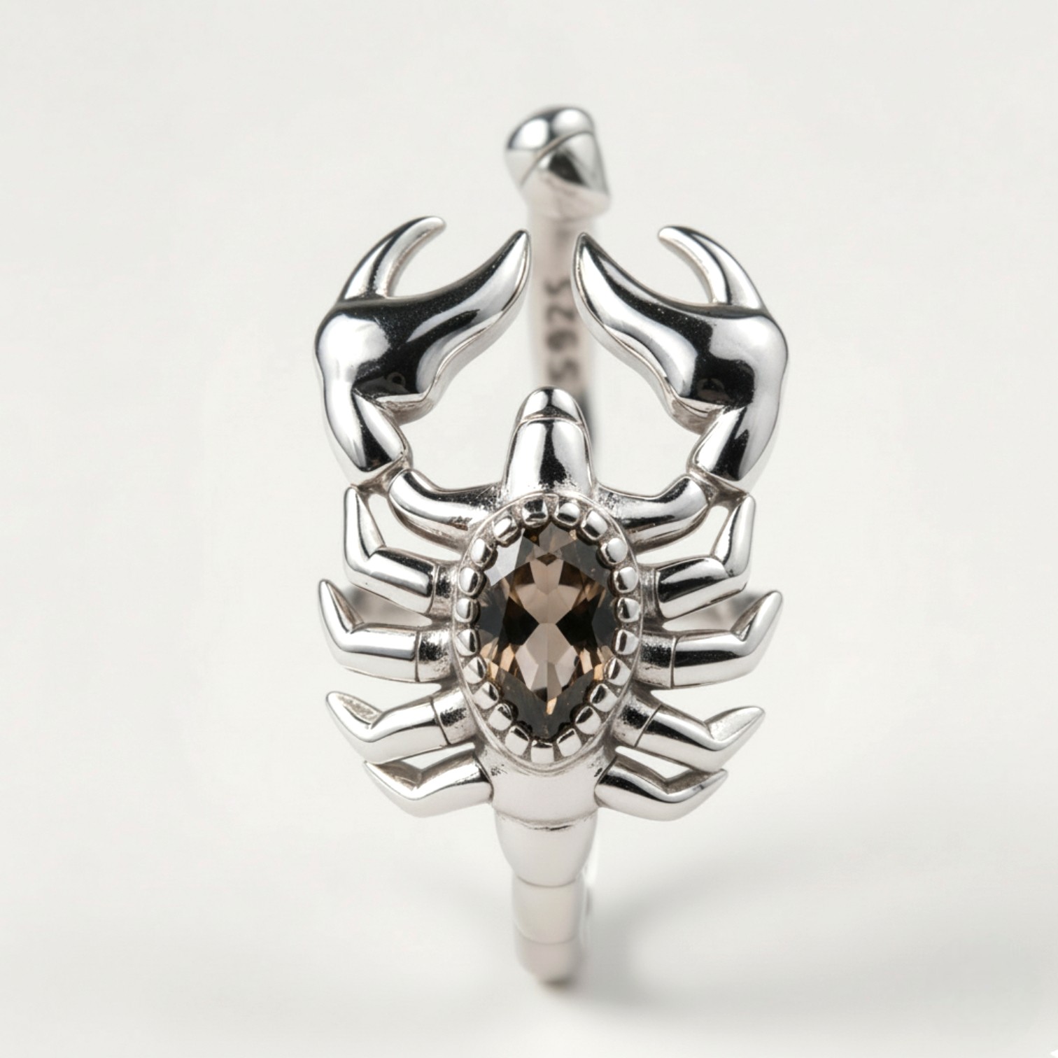 ✅ Design: Wyrazisty, rzeźbiony kształt Skorpiona z kamieniem w centrum.