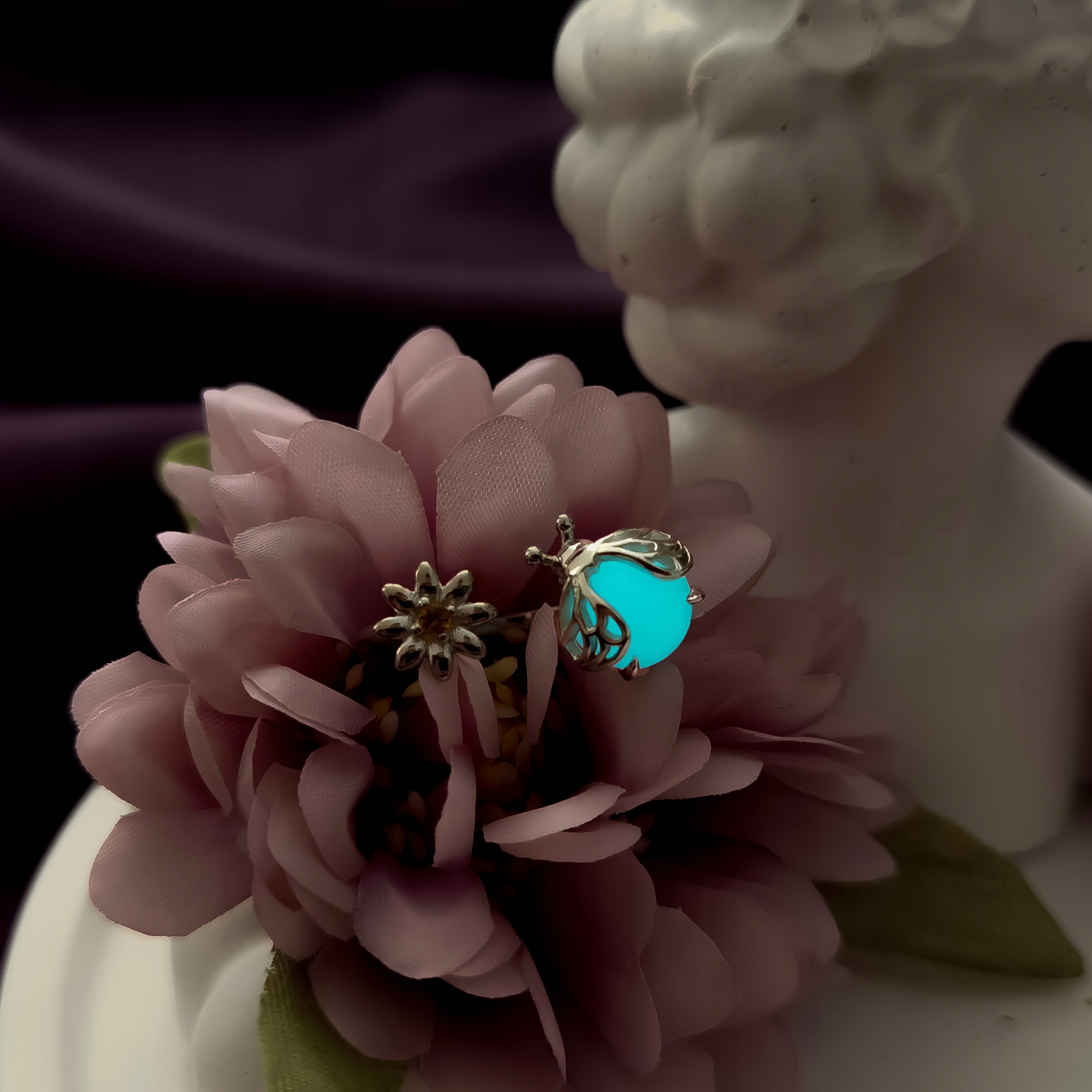 Ten uroczy i niezwykły pierścionek to prawdziwa perła dla osób, które cenią sobie unikalność i subtelne piękno. W dzień zachwyca swoim dopracowanym designem, a gdy zapada zmrok, ujawnia swoją magiczną właściwość – robaczek świętojański zaczyna świecić delikatną, błękitną poświatą, tworząc hipnotyzujący efekt!