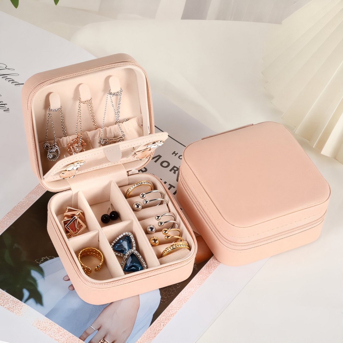 Prezentowana szkatułka to połączenie funkcjonalności i elegancji. Wykonana z wysokiej jakości ekoskóry w delikatnym różowym kolorze, stanowi praktyczne rozwiązanie do przechowywania biżuterii i stylowy element wystroju.