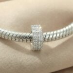 Podwójny Blask: Dwa rzędy lśniących cyrkonii sprawiają, że ten praktyczny element jest jednocześnie piękną ozdobą, nie ustępującą urokiem zwykłym charmsom.