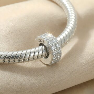 Podwójny Blask: Dwa rzędy lśniących cyrkonii sprawiają, że ten praktyczny element jest jednocześnie piękną ozdobą, nie ustępującą urokiem zwykłym charmsom.