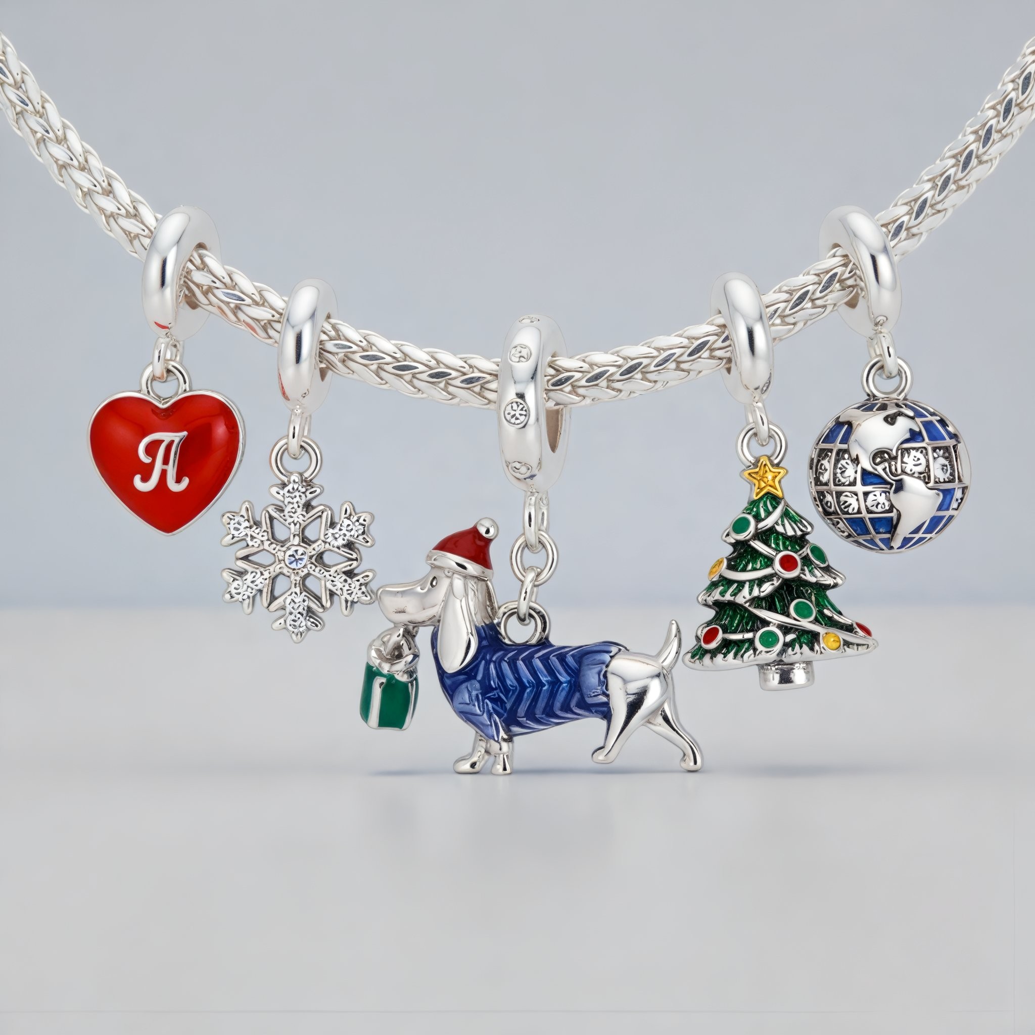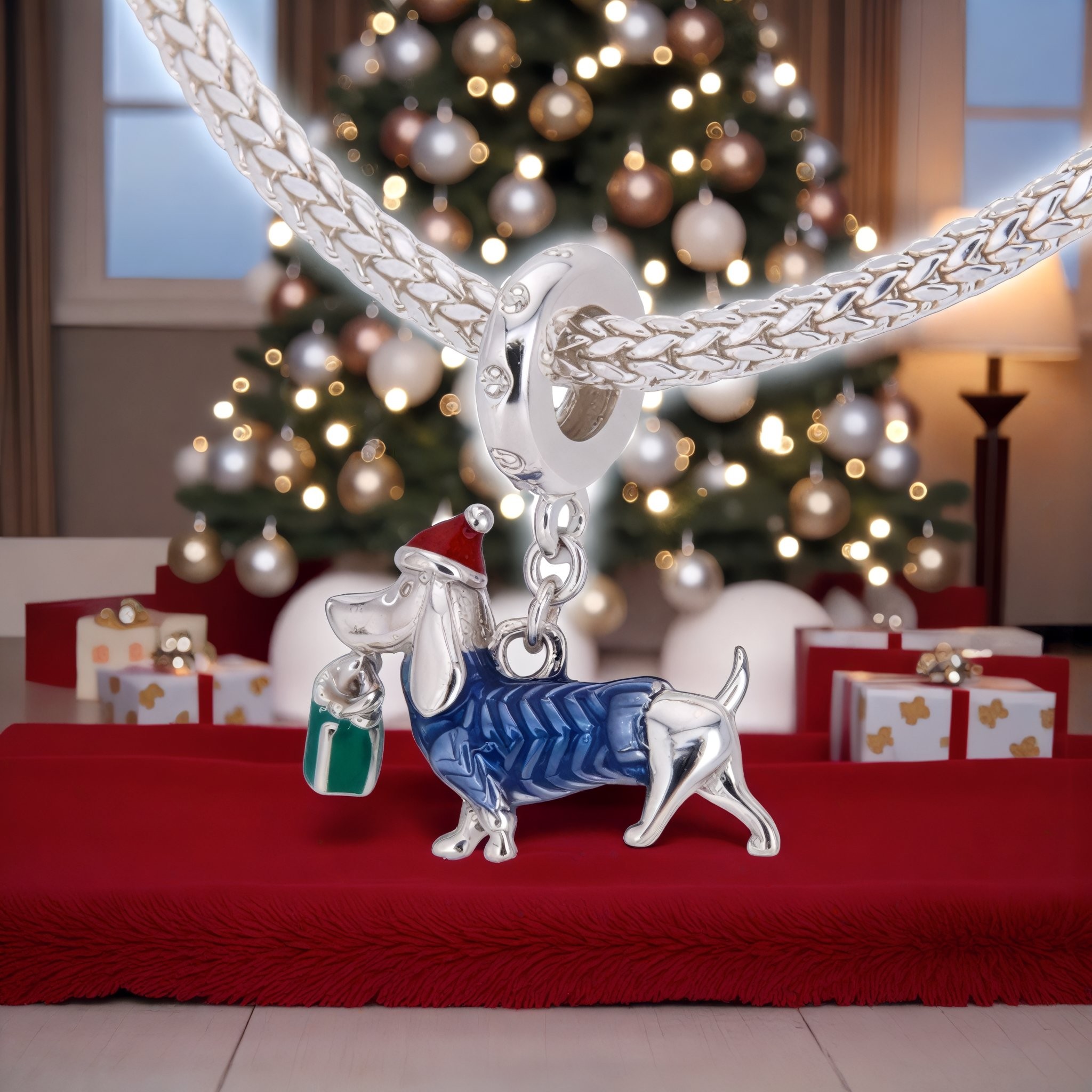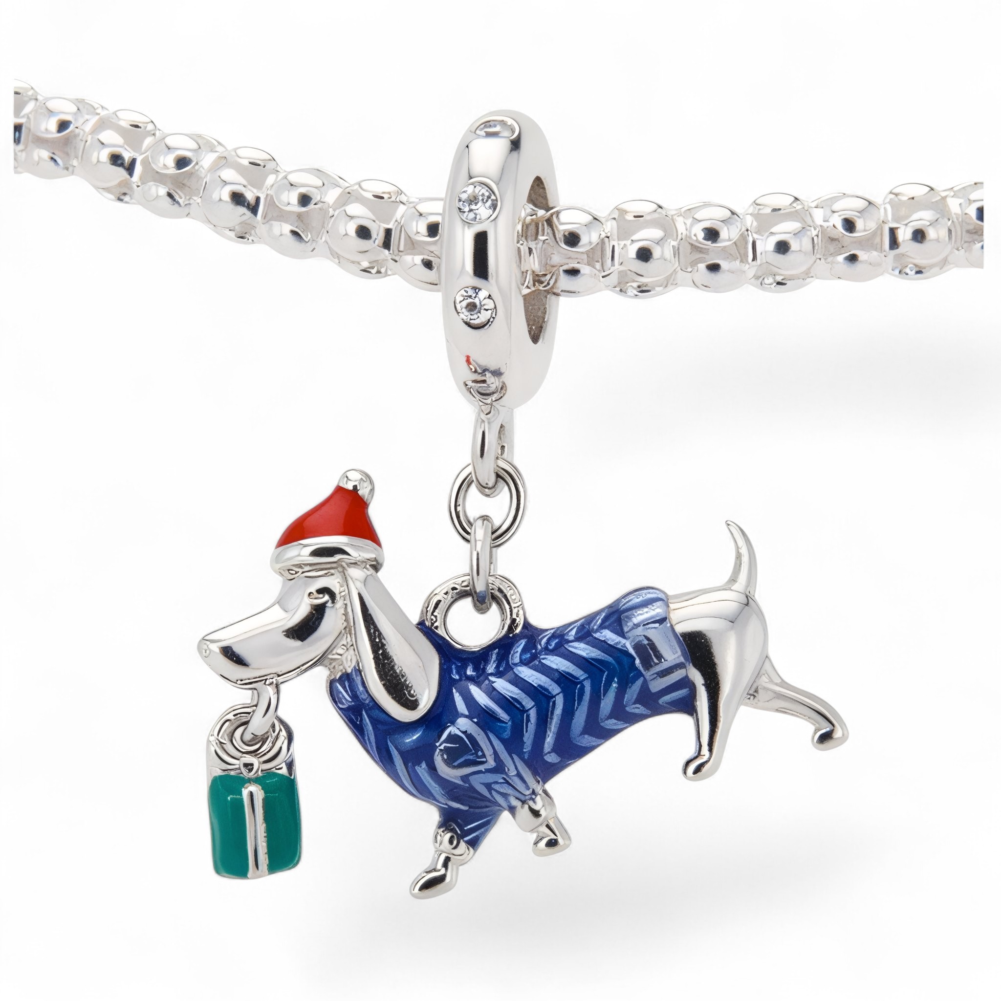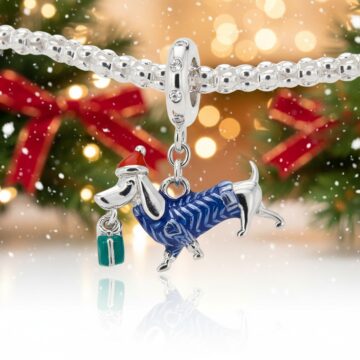 Wprowadź świąteczny nastrój do swojej kolekcji biżuterii za pomocą tego uroczego charmsa w kształcie jamnika. Ten wesoły piesek, gotowy na Wigilię, jest symbolem rodzinnego ciepła i świątecznej radości. Charms jest idealnym dodatkiem, by celebrować ulubiony zimowy czas, a jednocześnie wyrazić swoją miłość do czworonożnych przyjaciół.