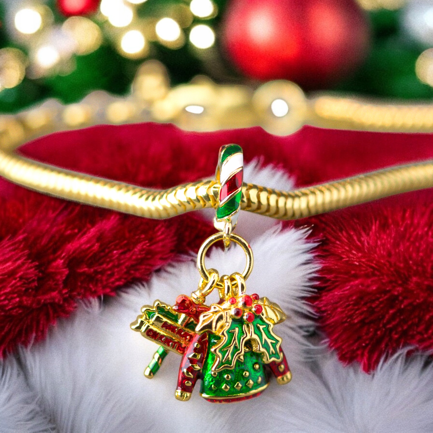 Charms potrójny ze świątecznymi atrybutami wykonany ze srebra to wyjątkowy świąteczny akcent, który wprowadza magię Bożego Narodzenia do Twojej biżuterii.
