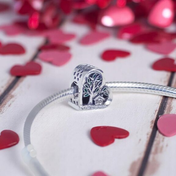 Dom to nie tylko miejsce – to ludzie, którzy go tworzą, a mama jest często jego sercem. Charms Dom Rodzinny to piękny srebrny zawieszka w kształcie serca z motywem drzewa i małego domku. Ten urokliwy design symbolizuje bezpieczeństwo, ciepło i miłość, które kojarzą się z mamą i domem rodzinnym.