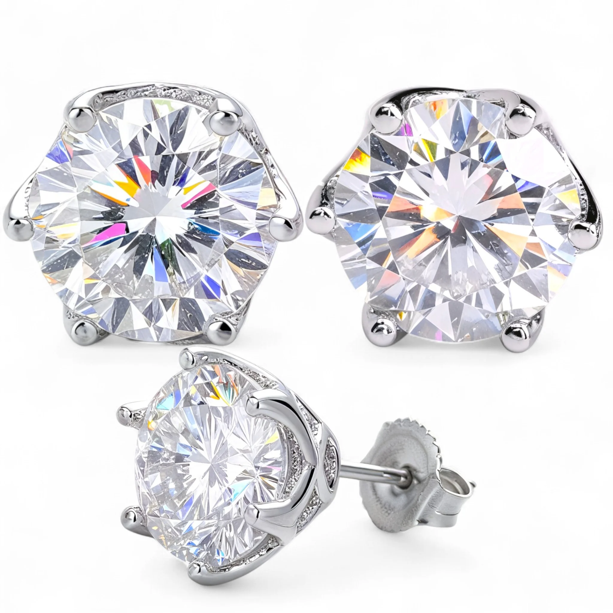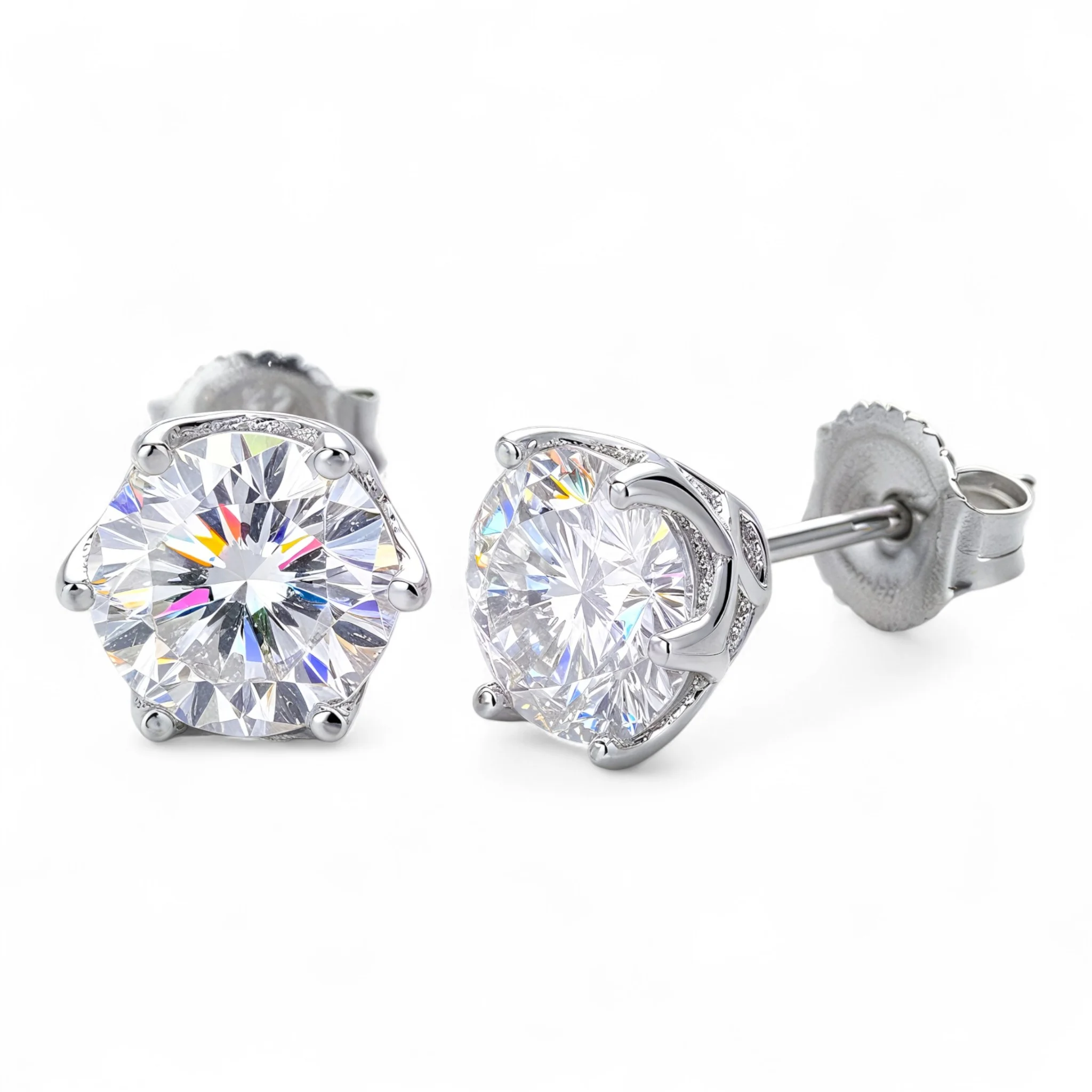 1. Kolczyki z moissanitem 6,5 mm, srebro 925 – 2x 1 ct